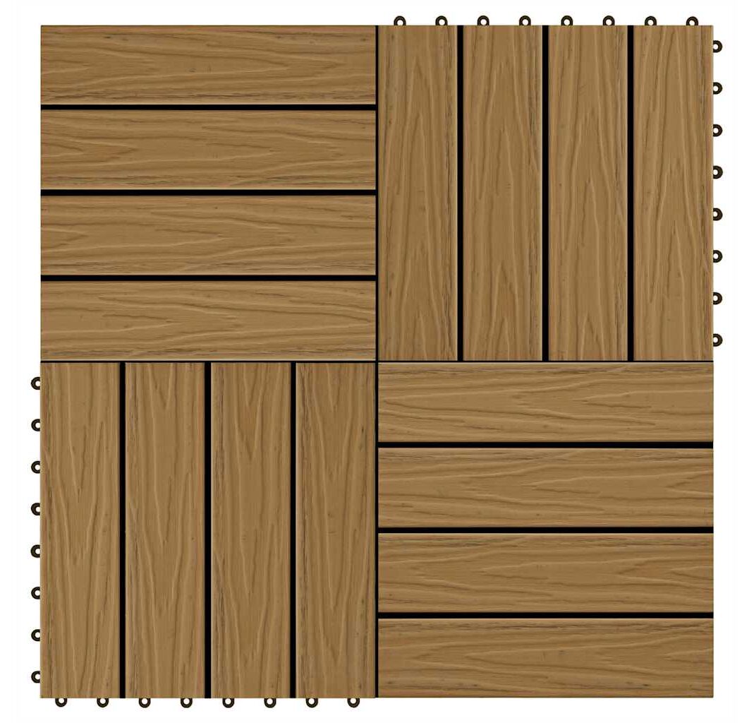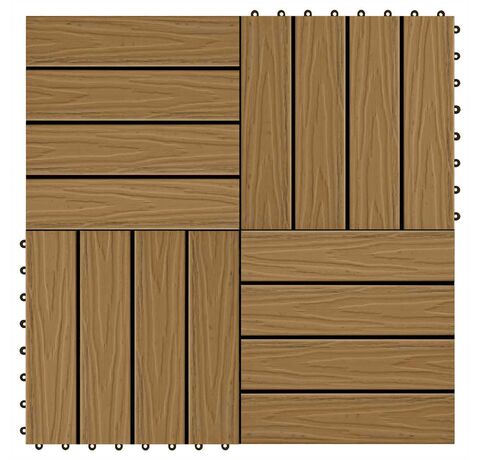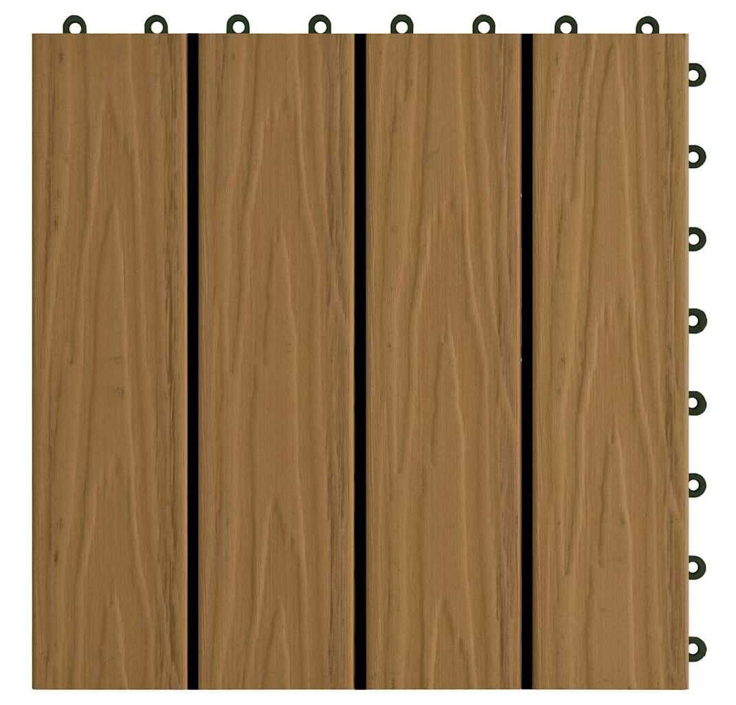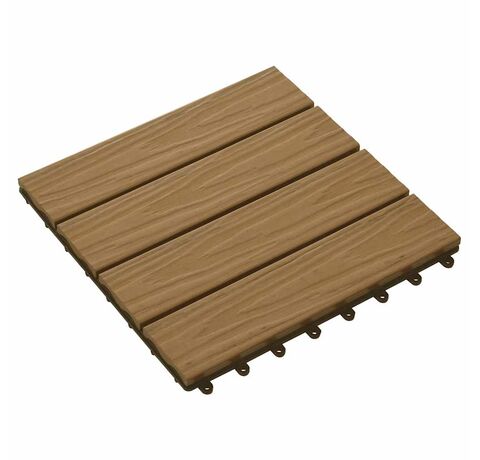 Setul de plăci de pardoseală în relief din WPC, cu o dimensiune a plăcii de 30 x 30 cm, este format din 11 piese și va acoperi o suprafață totală de 1 metru pătrat. Acestea vor oferi un aspect curat curții, balconului, băii, piscinei sau zonei de spa.