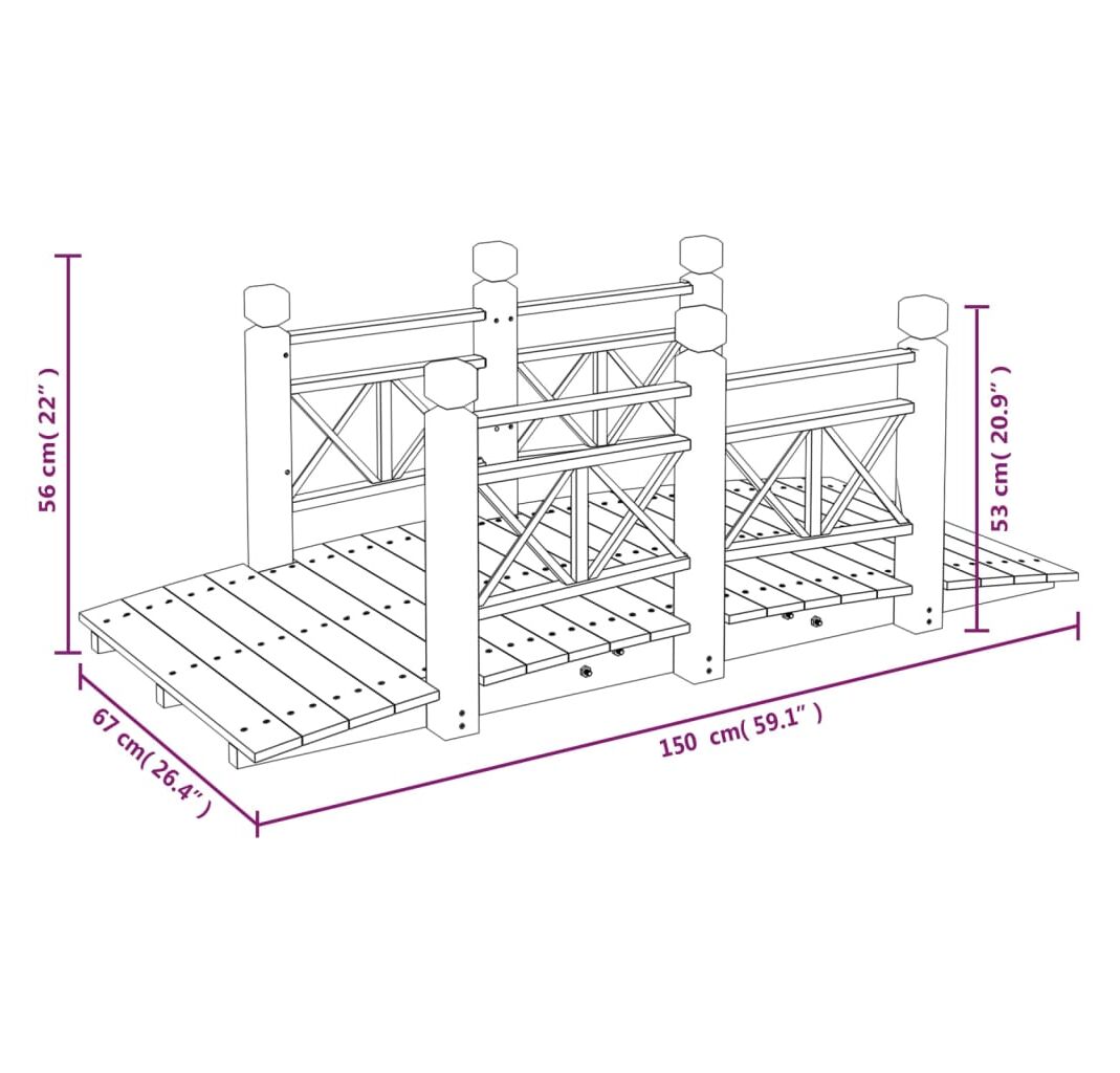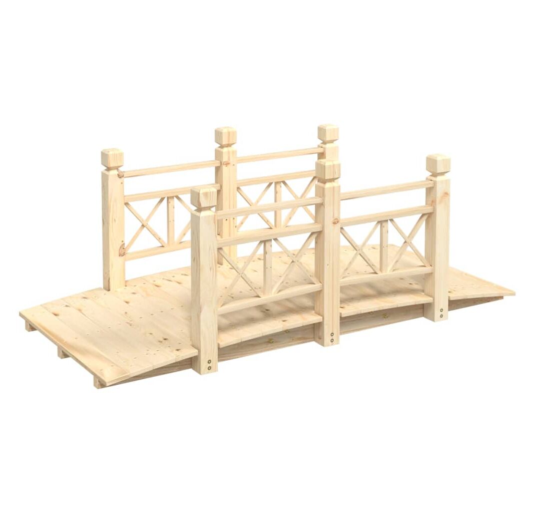 - Lemn masiv de molid: Realizat din lemn masiv de molid, podul pentru iaz este durabil și stabil.