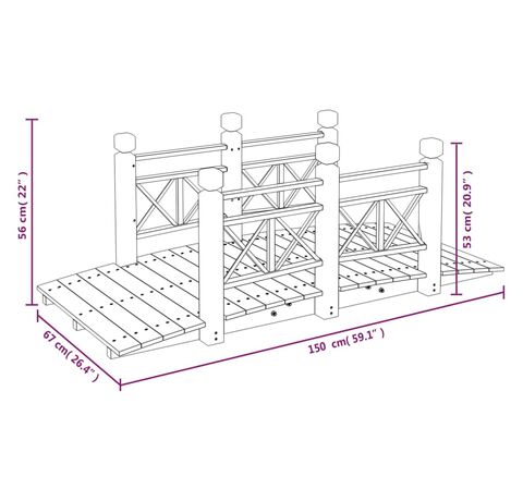 - Cadru din lemn: Cadrul din lemn al podului de iaz pentru grădină, asigură rezistență și stabilitate. Scândurile suplimentare din lemn de pe partea inferioară îl mențin mai stabil, fără a se mișca.