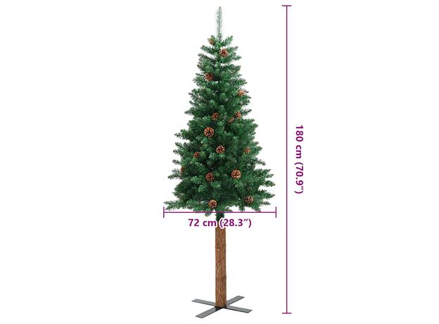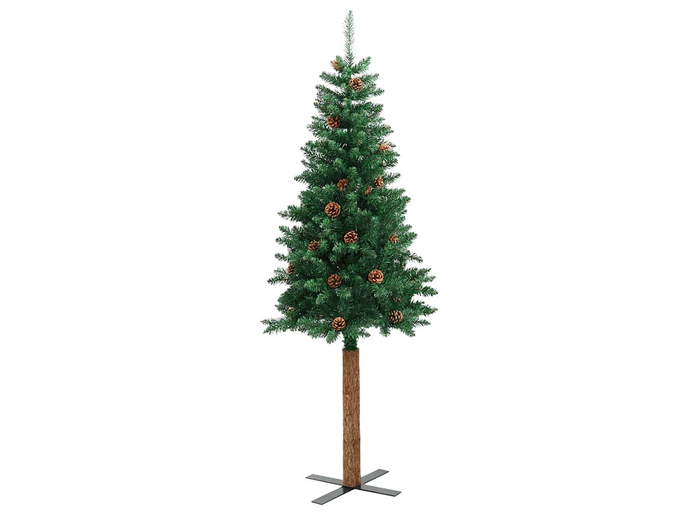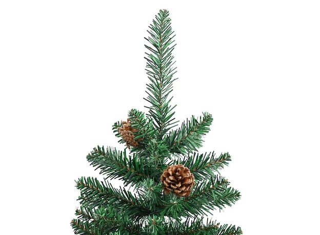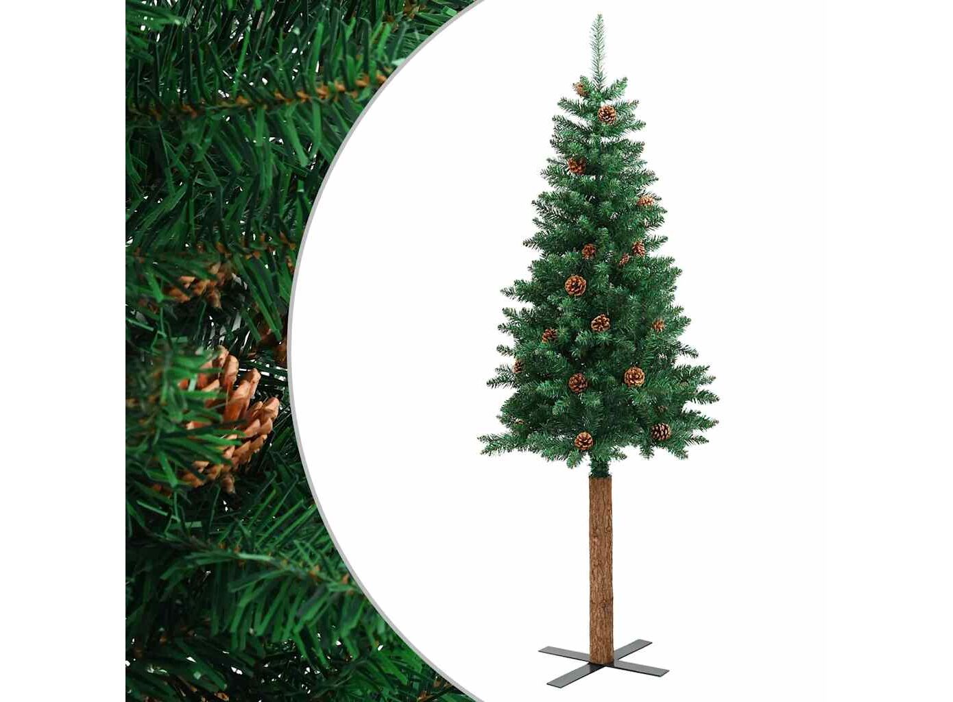 Pom Crăciun artificial subțire lemn și conuri verde 180 cm PVC