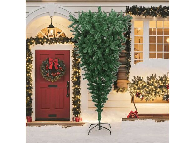 Pom de Crăciun artificial inversat, cu suport, verde, 240 cm