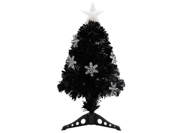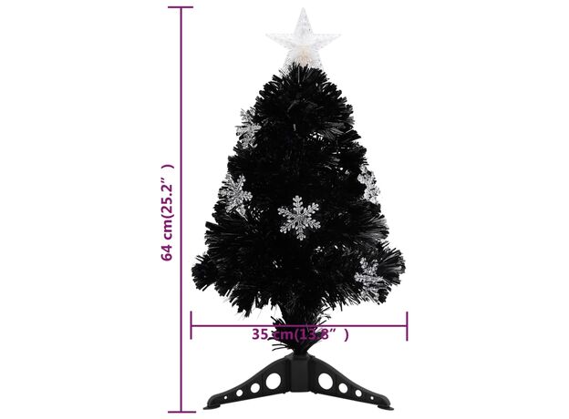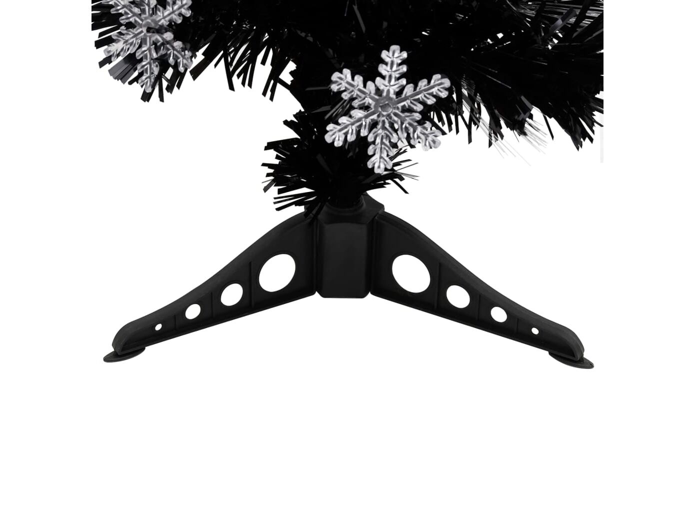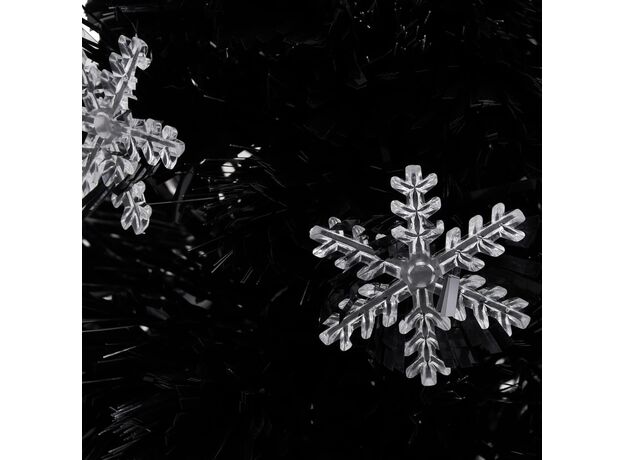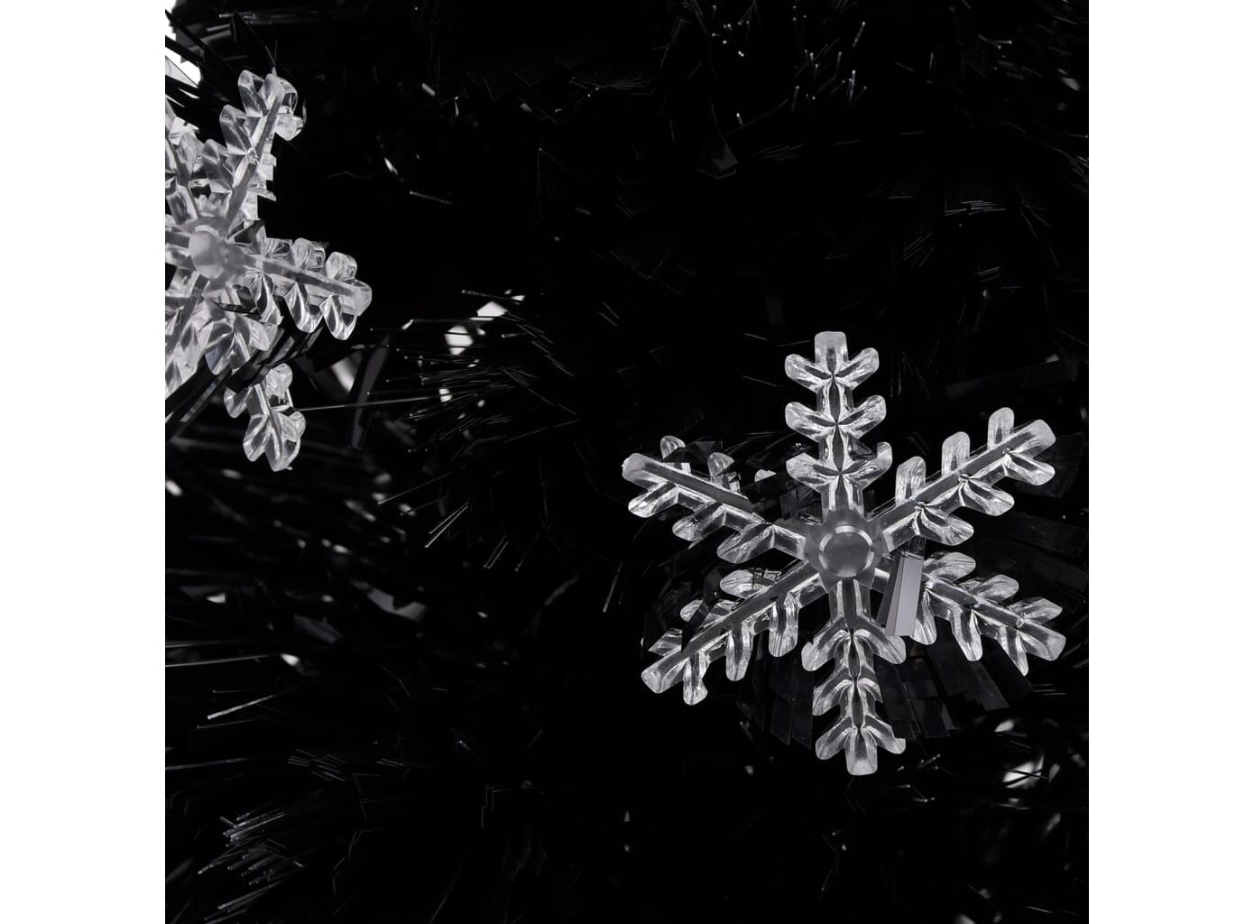 Pom de Crăciun cu LED fulgi de zăpadă, negru 64 cm fibră optică