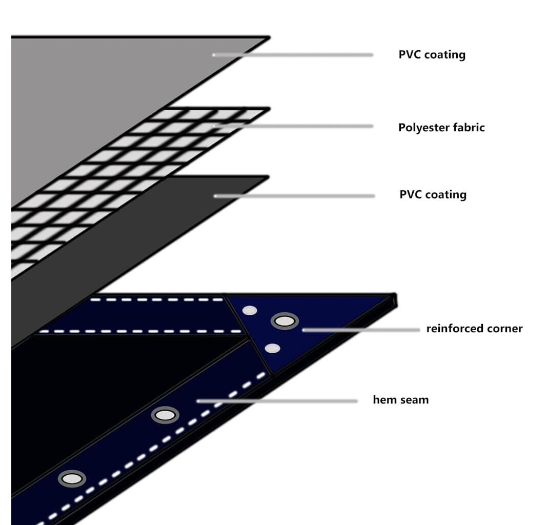 - Material durabil și rezistent la apă: Prelata este realizată din pânză de înaltă calitate, acoperită cu un strat de PVC, ceea ce o face rezistentă la rupere, la apă și la raze UV, putând fi folosită la temperaturi cuprinse între -30°C și 70°C.