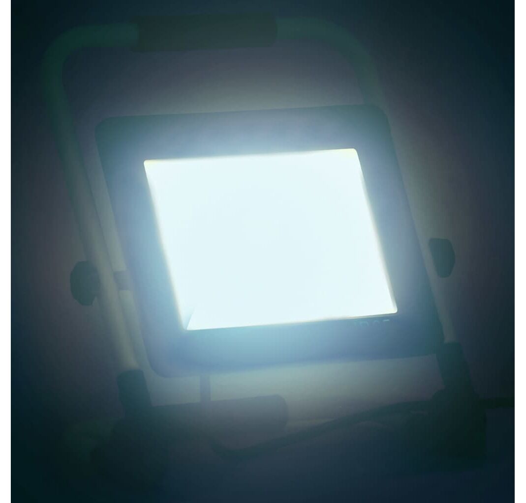 Datorită carcasei din aluminiu și capacului din sticlă, această lampă de lucru oferă o bună performanță de disipare a căldurii și este ușoară. Cu un flux luminos 7000 lm și un unghi al fasciculului de 120°, asigură o iluminare perfectă. În plus, proiectorul emite o temperatură de culoare de 6000 K pentru a oferi condiții optime de iluminare în jurul casei dvs. Lampa este fabricată cu un cadru stabil din tub de oțel cu mâner ergonomic pentru un transport ușor. Între timp, poate fi pliat atunci când nu este utilizat. Este eficient din punct de vedere energetic și, în același timp, beneficiați de o durată lungă de viață de până la 50.000 de ore.