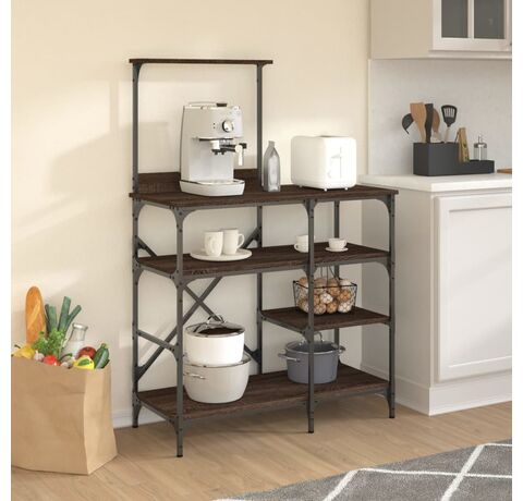 Raft brutărie, stejar maro, 90x40x132 cm, lemn prelucrat/metal