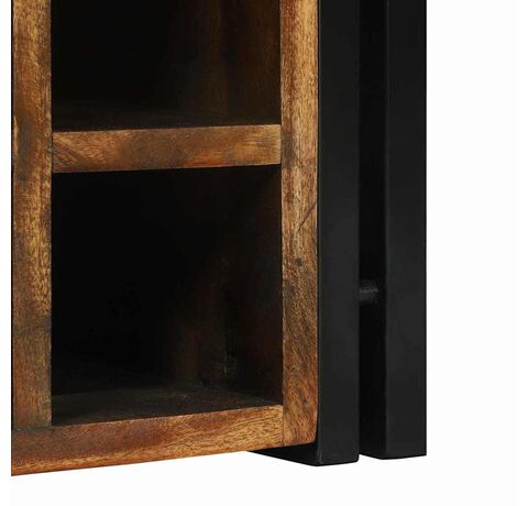 Acest raft rustic pentru vin îți oferă un loc confortabil pentru sticlele tale. E construit cu stil și forță, având un finisaj multicolor din lemn reciclat și accente metalice negre care îl transformă într-o piesă de bază pentru barul tău acasă sau zona de dining.