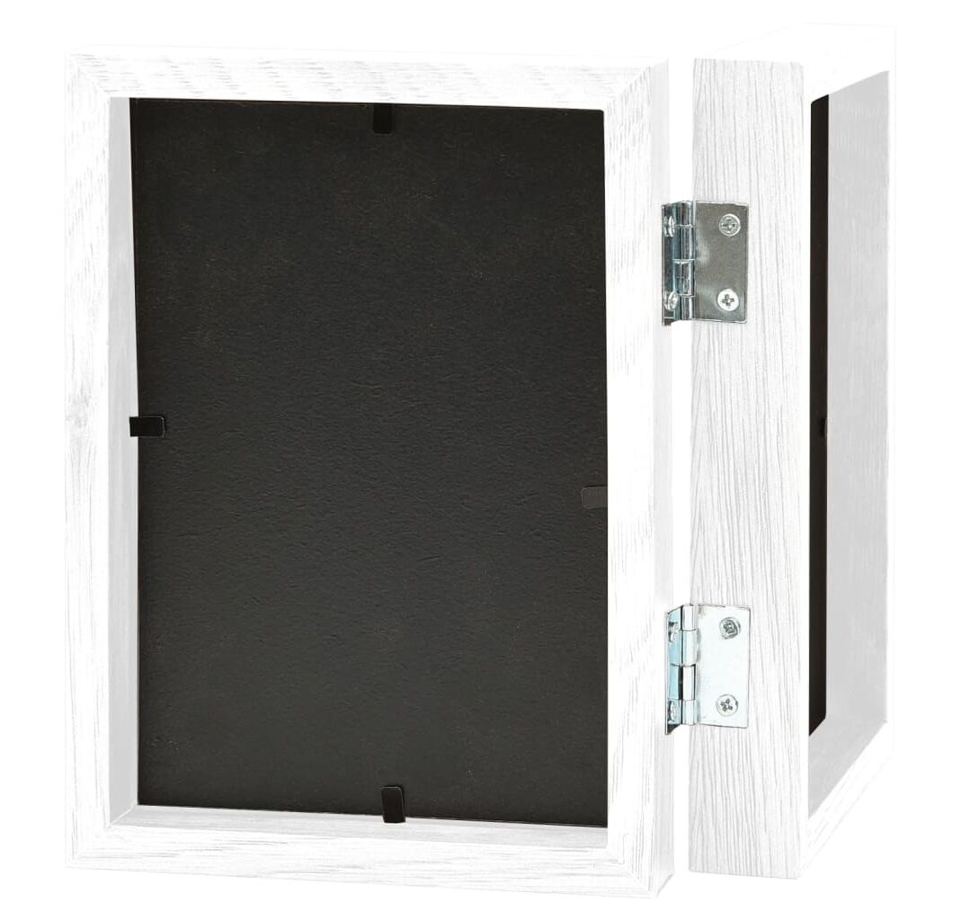 Rama foto cu balamale are linii drepte clasice și oferă o notă vibrantă și modernă spațiului de locuit. Este alcătuită din MDF în partea din spate și material PS dur în față, pentru protecție. Puteți înlocui cu ușurință pozele, folosind încuietoarea din spate. Acest cadru de fotografii are un design pliabil și poate sta pe masă fără suport.