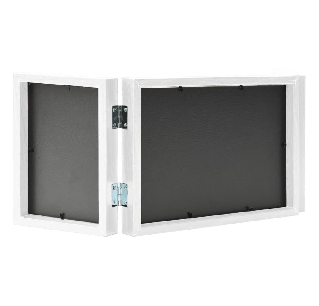 Rama foto cu balamale are linii drepte clasice și oferă o notă vibrantă și modernă spațiului de locuit. Este alcătuită din MDF în partea din spate și material PS dur în față, pentru protecție. Puteți înlocui cu ușurință pozele, folosind încuietoarea din spate. Acest cadru de fotografii are un design pliabil și poate sta pe masă fără suport.