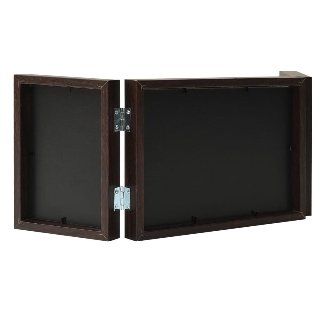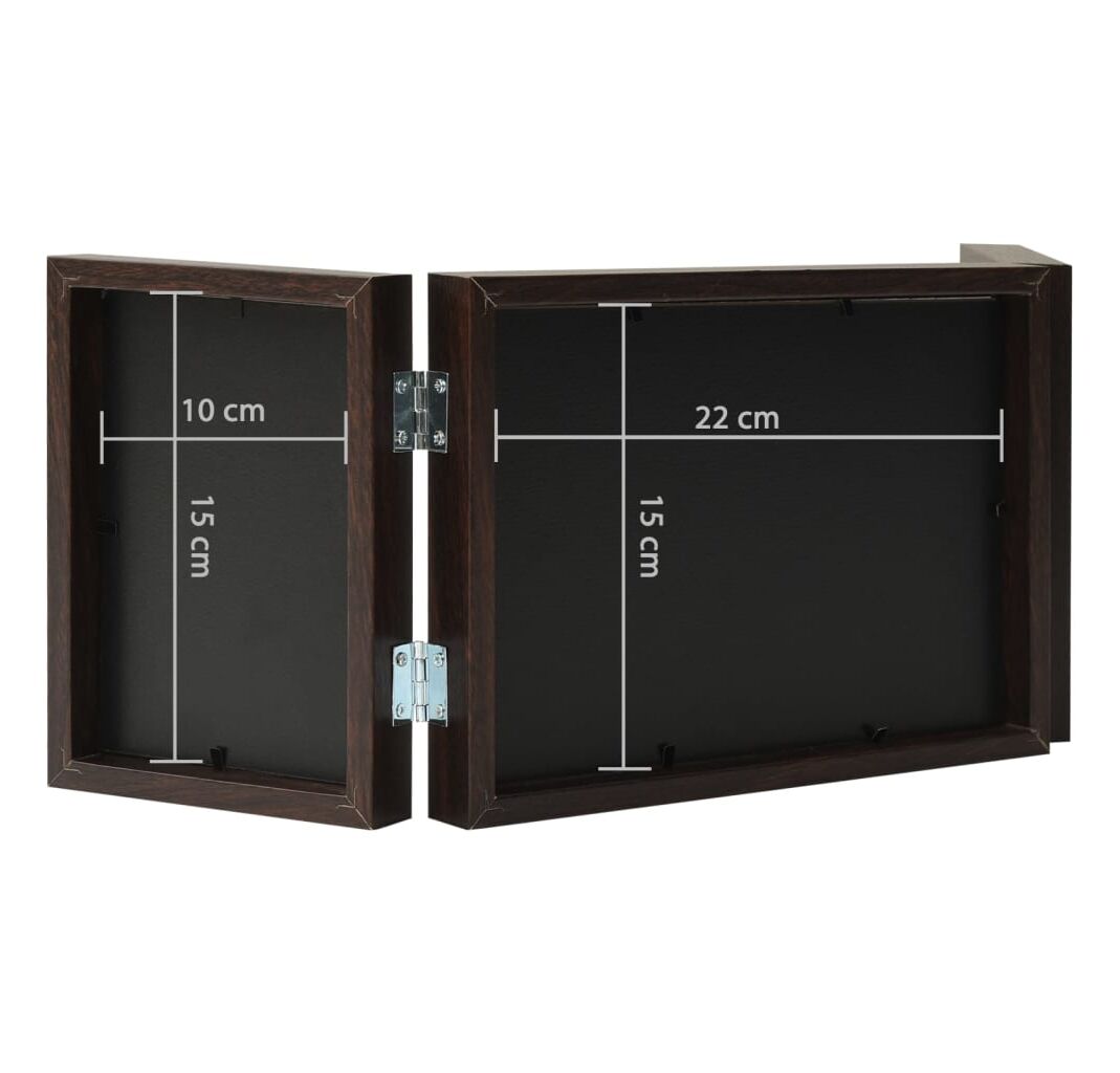 Rama foto cu balamale are linii drepte clasice și oferă o notă vibrantă și modernă spațiului de locuit. Este alcătuită din MDF în partea din spate și material PS dur în față, pentru protecție. Puteți înlocui cu ușurință pozele, folosind încuietoarea din spate. Acest cadru de fotografii are un design pliabil și poate sta pe masă fără suport.