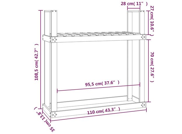 Rastel pentru lemne de foc, 110x35x108,5 cm, lemn masiv douglas