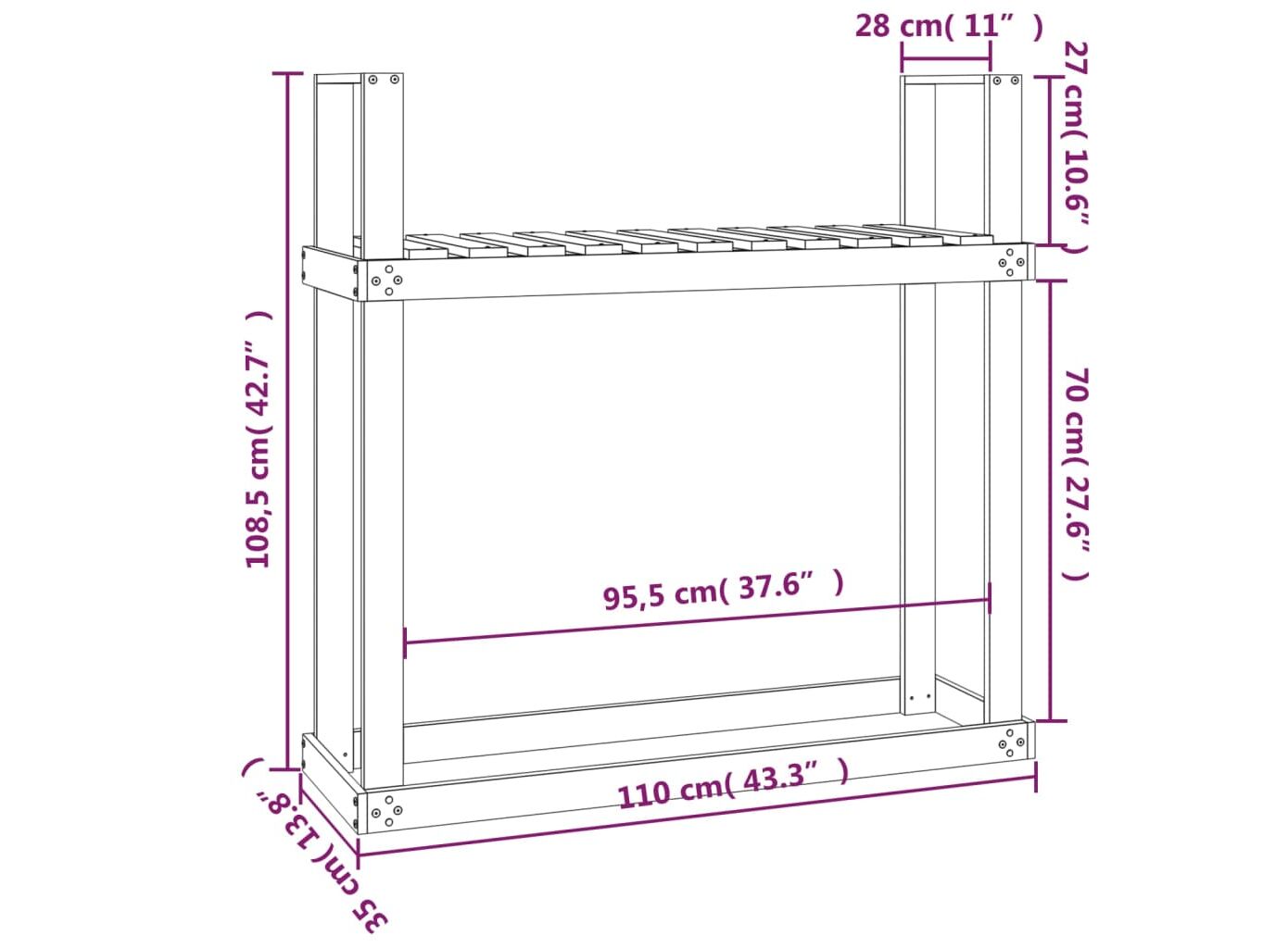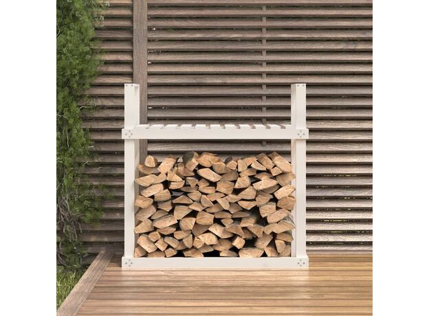 Rastel pentru lemne de foc, alb, 110x35x108,5 cm lemn masiv pin