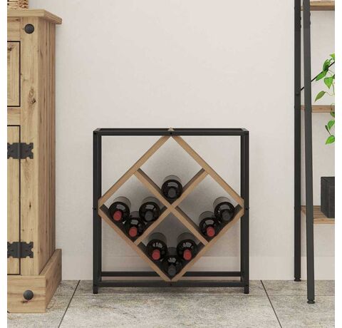 Acest raft pentru vin e combinația ideală între stil și utilitate, cu un finisaj superb din stejar artisan și un cadru negru robust. E perfect pentru interior, oferind un loc elegant pentru a expune și stoca până la 8 sticle de vin, începând de la sufragerie, bucătărie sau living.