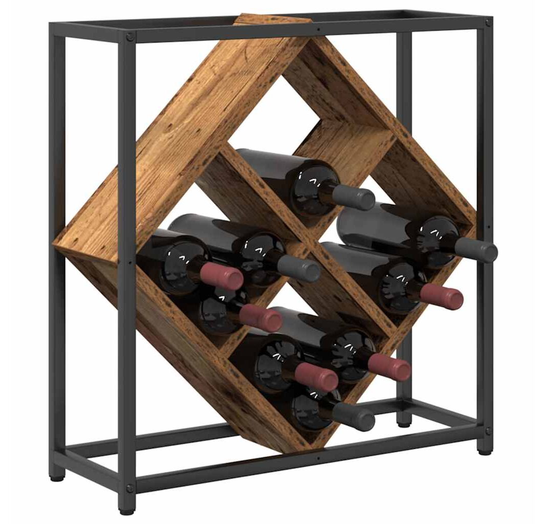 Acest raft rustic din lemn reciclat aduce căldură și eleganță în casa ta. Perfect pentru a stoca până la opt sticle, se potrivește bine în sufragerie, bucătărie sau living, oferindu-ți o modalitate stilizată de a păstra sticlele organizate și ușor accesibile.