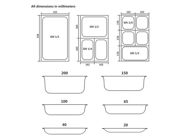 Cantitatea minima pentru "Recipiente Gastronorm 4 buc. GN 1/1 65 mm oțel inoxidabil" este 1.