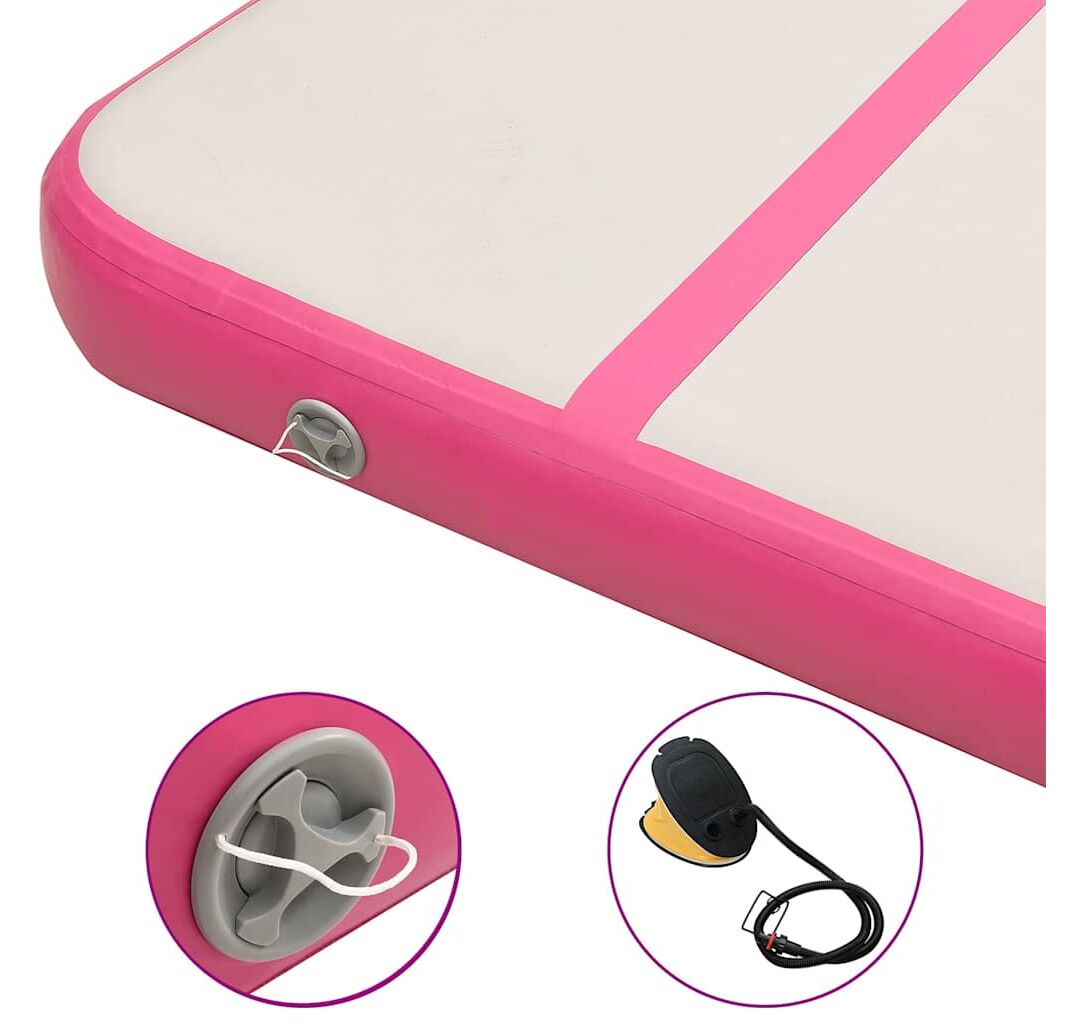 Saltea gimnastică gonflabilă cu pompă roz 800x100x20 cm PVC