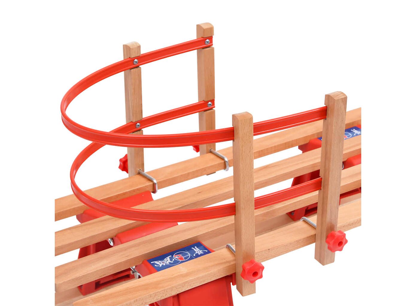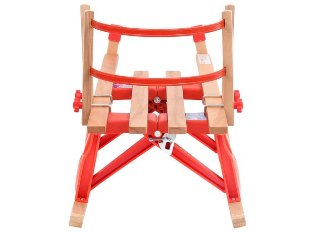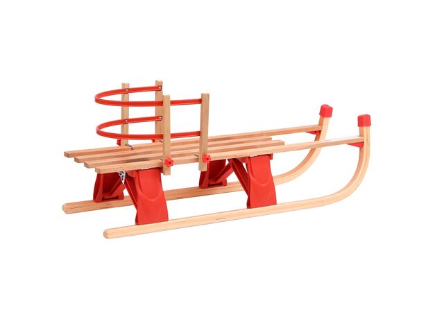 Această sanie pliabilă din lemn cu spătar vă oferă o experiență extraordinară în această iarnă. Tălpile lungi, metalice și durabile vă oferă o călătorie lină, chiar și la cea mai abruptă coborâre.