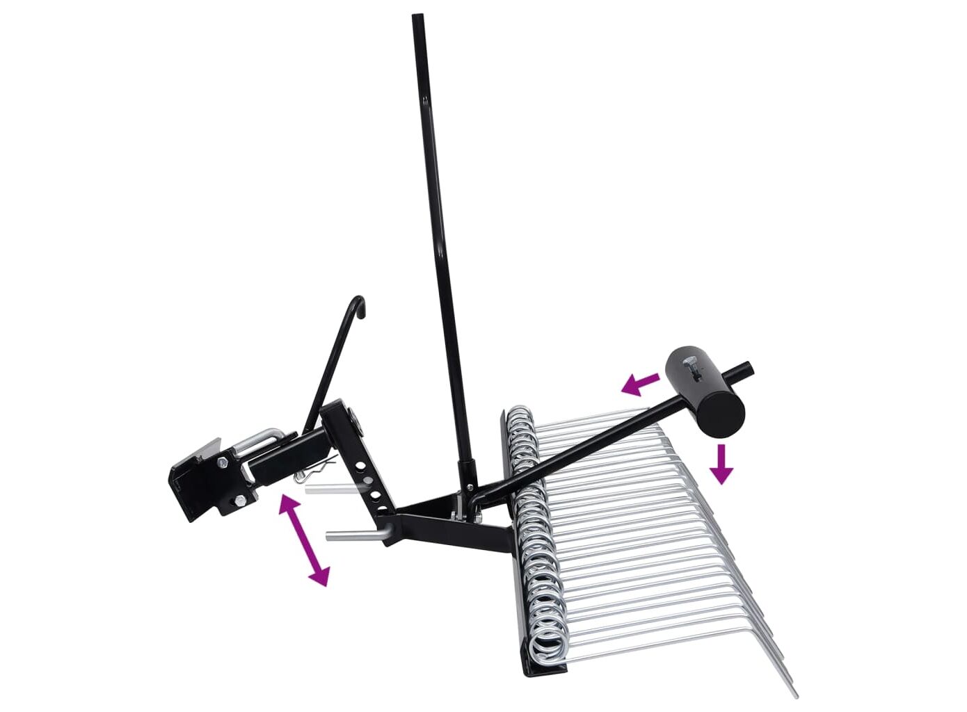 - Conectare ușoară: Cu dispozitivul de cuplare, accesoriul de îndepărtare a mușchiului poate fi conectat ușor și în siguranță la mașina de tuns iarba sau la tractorul de gazon.