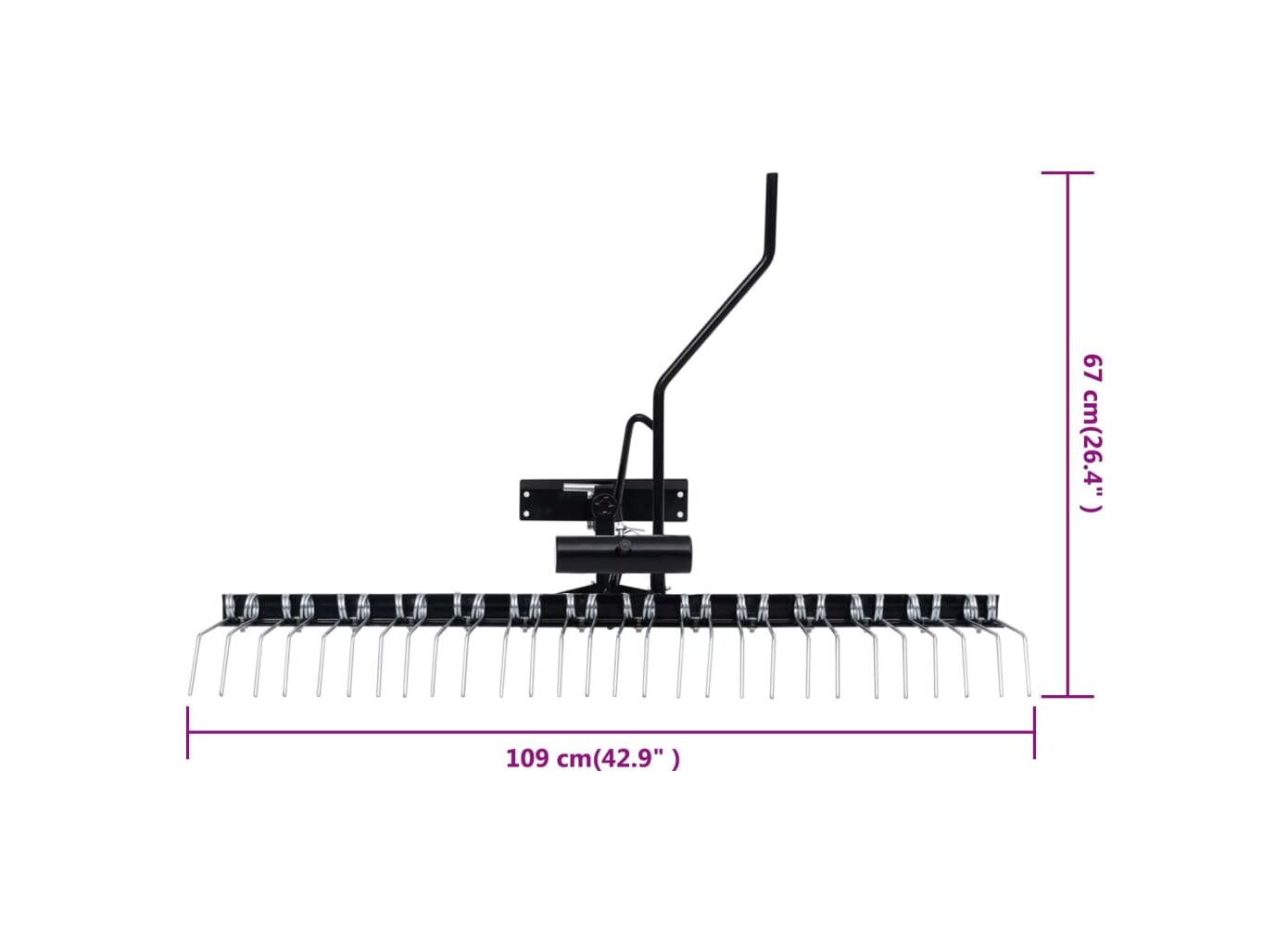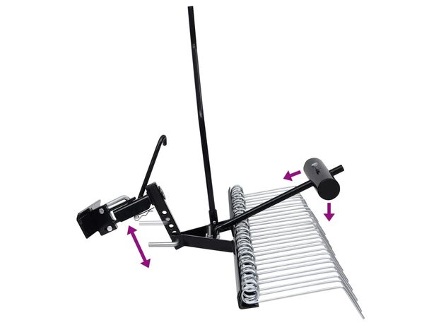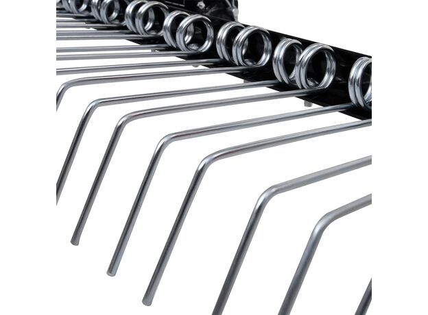 - Scarificare rapidă și eficientă: Cu cei 14 dinți dubli cu arc durabil și o lățime de scarificare de 109 cm, scarificatorul de gazon oferă o modalitate rapidă și eficientă de a vă scarifica gazonul. Dinții cu arc sunt tratați termic pentru o rezistență suplimentară, asigurându-te că pot face față lucrărilor dificile.