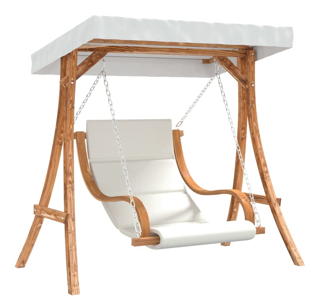 Scaun balansoar cu pernă și baldachin, lemn masiv de molid