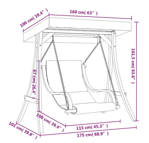 • Dimensiuni scaun balansoar: 115 x 100 x 67 cm (l x ad. x î)