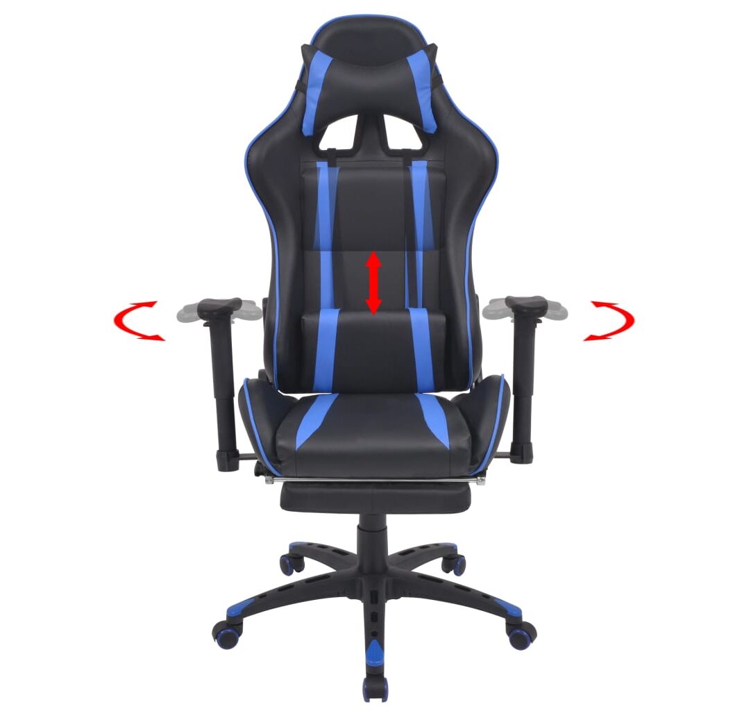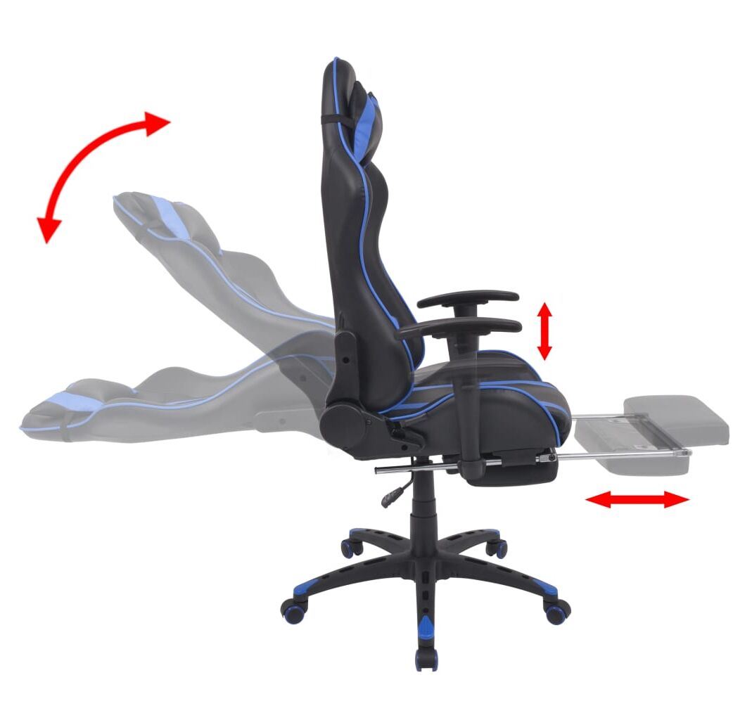 Scaun birou rabatabil, design racing, suport picioare, albastru