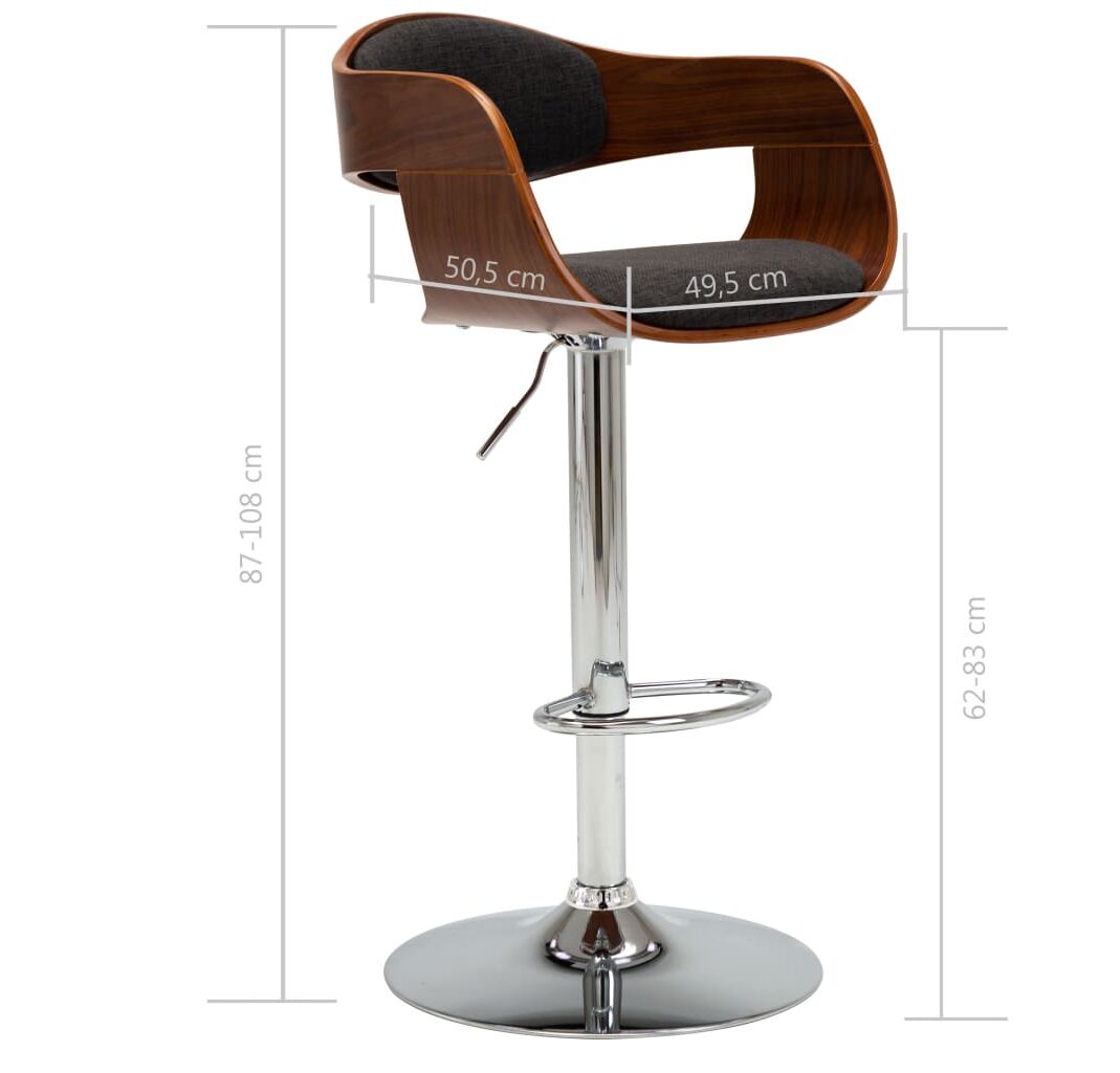 Scaunul este tapițat cu material textil moale la atingere pentru a oferi un confort optim. Cadrul din lemn curbat adaugă frumusețe și un stil unic. Baza din metal cromat oferă o rezistență ridicată, în timp ce suportul pentru picioare încorporat adaugă un confort suplimentar la ședere. Designul ergonomic face ca scaunul să fie foarte comod pentru ore în șir de utilizare. În plus, datorită mecanismului de ridicare cu piston pe gaz, acest scaun de bar poate fi reglat în înălțime, fiind o completare perfectă în orice bar funcțional sau zonă de luat masa.