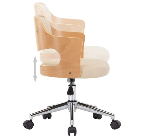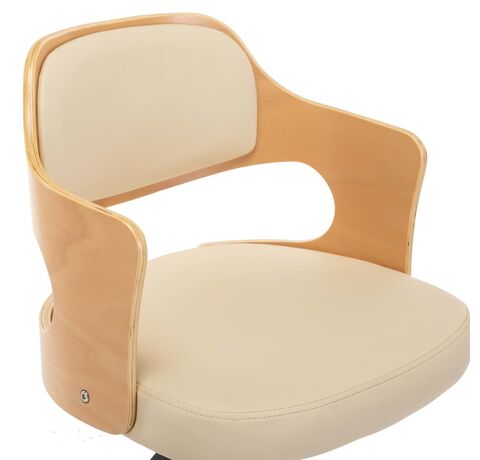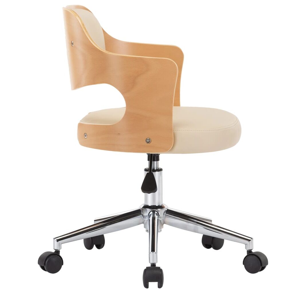 Șezutul și spătarul sunt tapițate în piele ecologică, ușor de curățat, asigurând scaunului un confort optim. Cadrul din lemn adaugă stabilitate acestui scaun lateral. Spătarul și șezutul vă susțin spatele și reduc presiunea asupra coloanei vertebrale. Este echipat cu 5 rotile pentru o deplasare ușoară în jur. Mecanismul de ridicare cu piston pe gaz vă permite să reglați înălțimea scaunului. Va aduce un plus de eleganță în orice locuință sau birou.