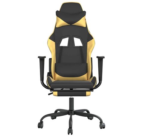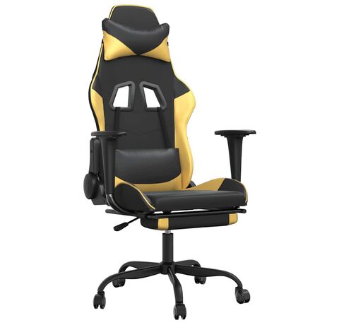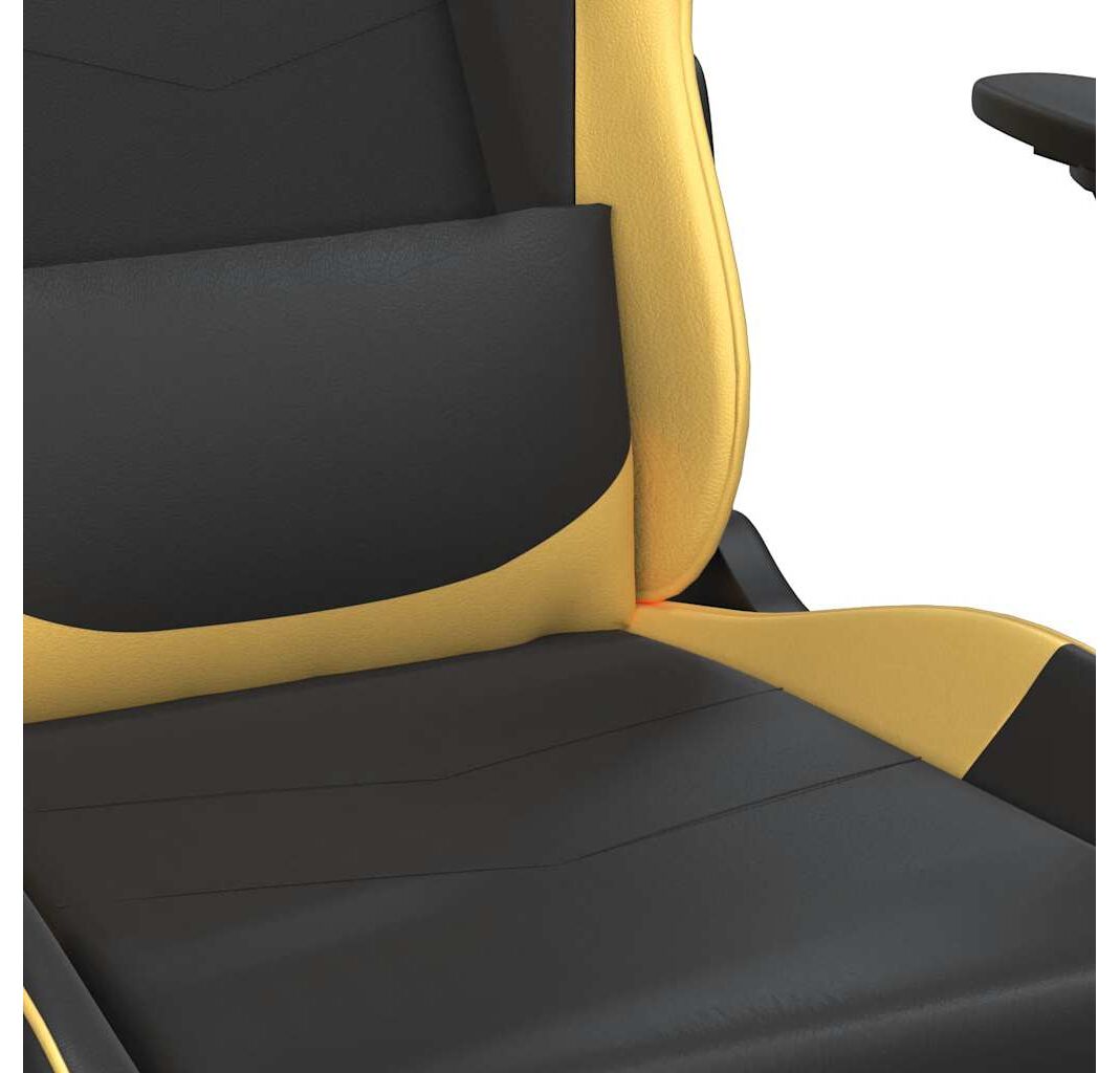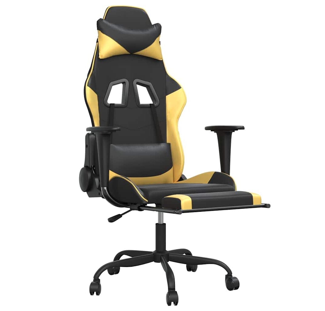 Scaun de gaming cu masaj/suport picioare negru/auriu piele eco