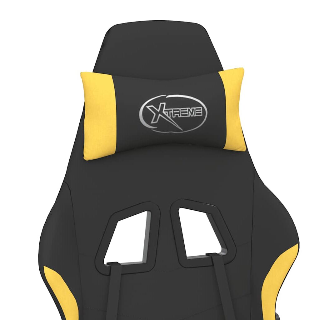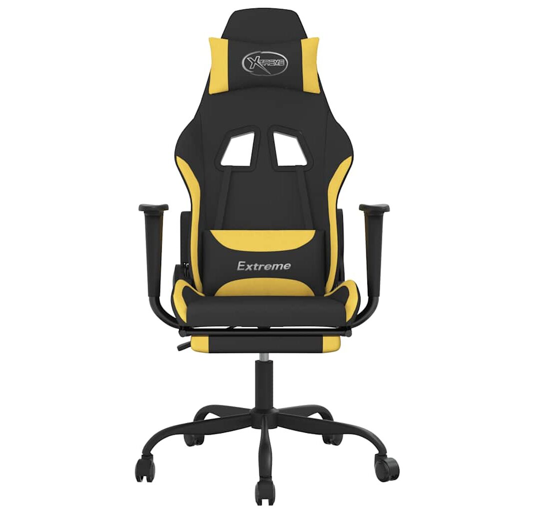 Scaun de gaming cu masaj/suport picioare, negru/galben, textil