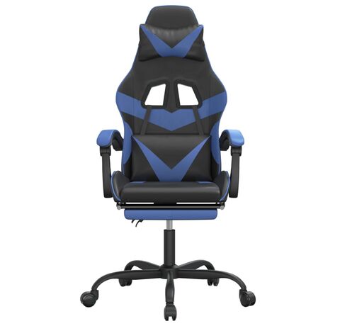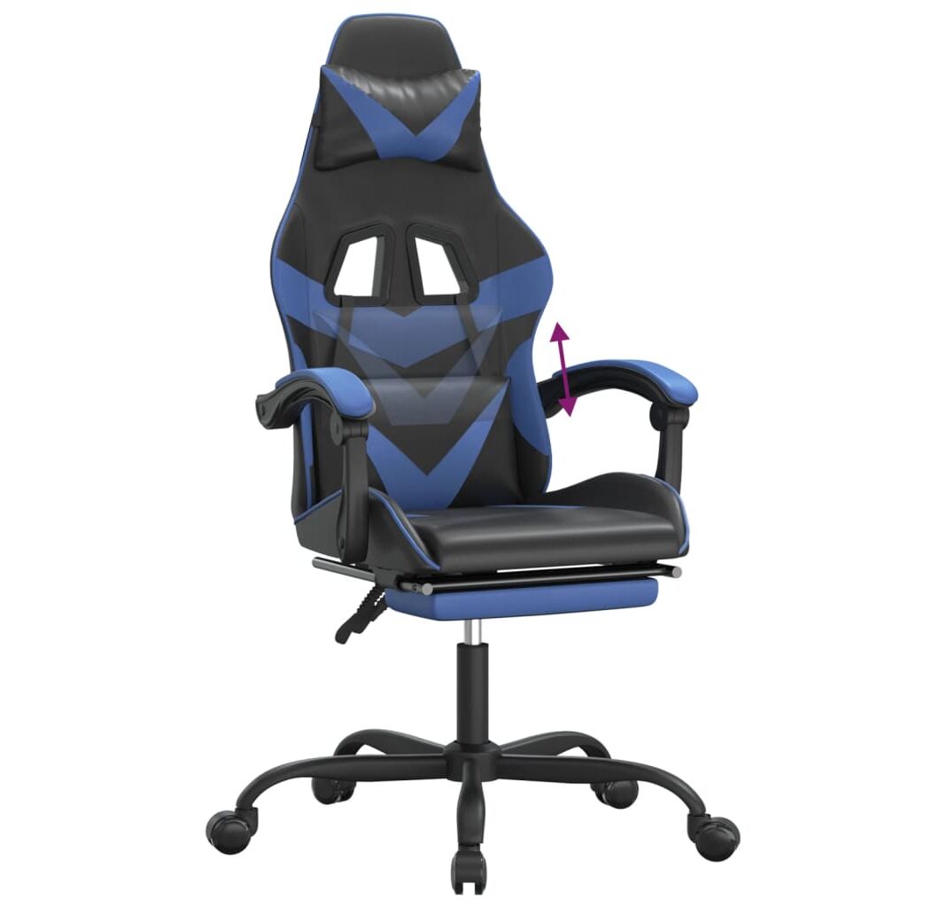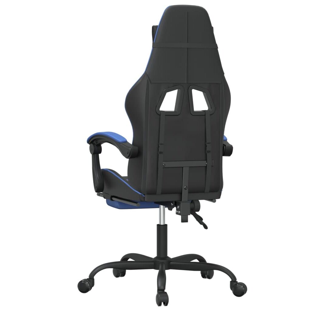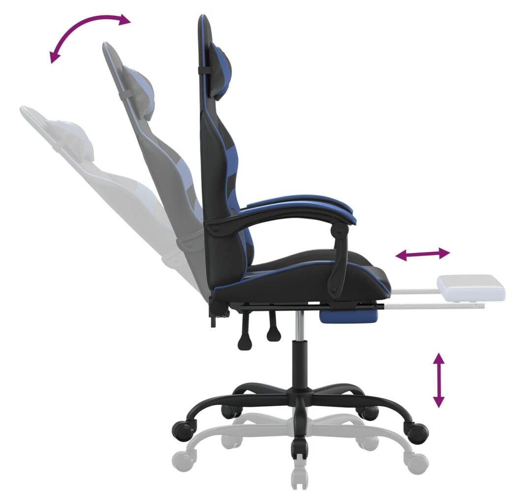 Scaun de gaming cu suport picioare, negru/albastru, piele eco