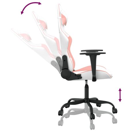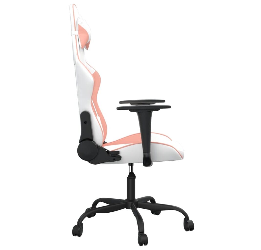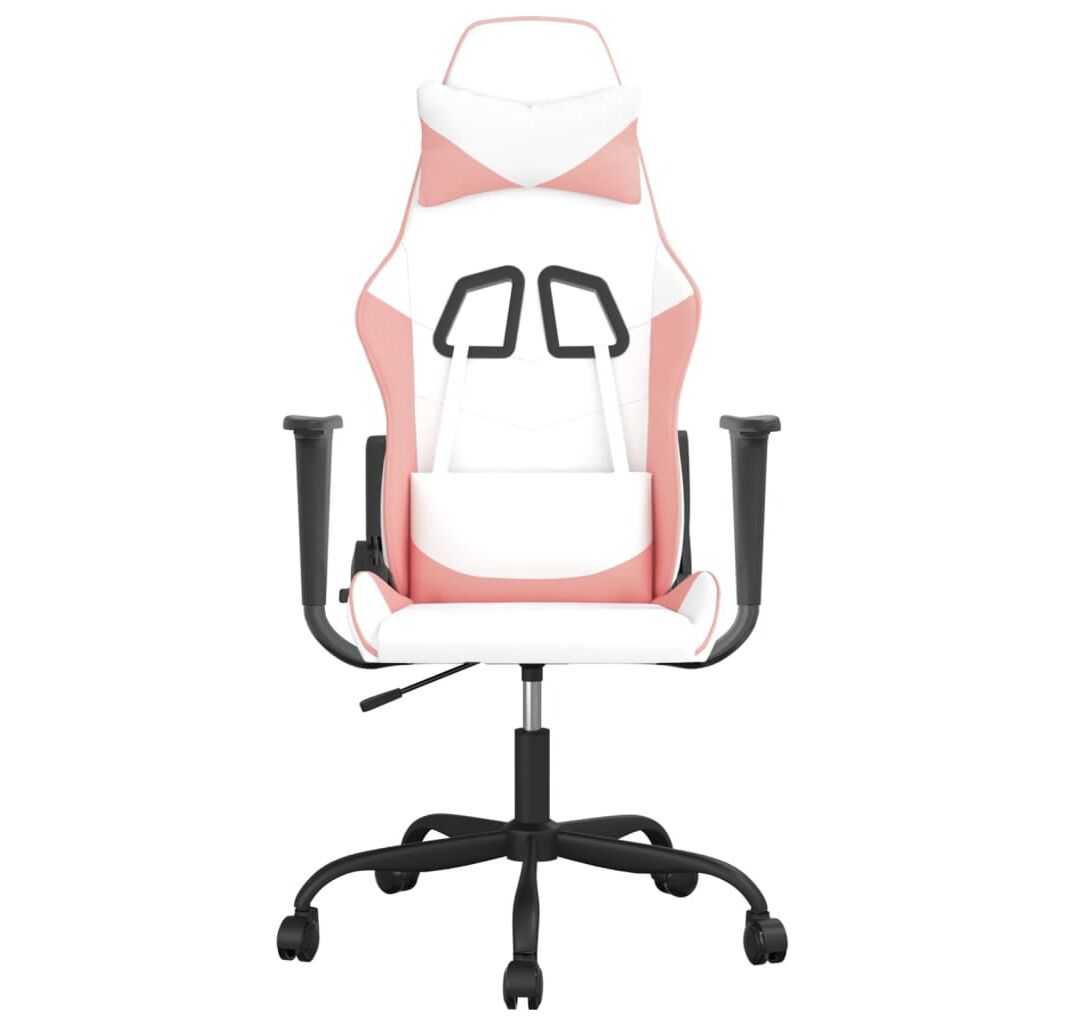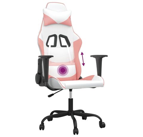 Scaun de gaming de masaj, alb și roz, piele ecologică