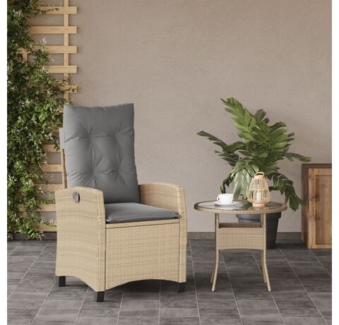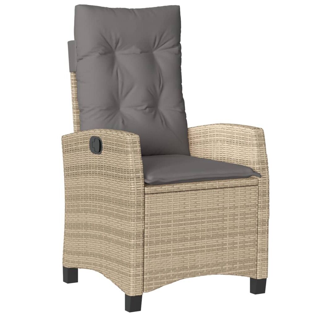Scaun de grădină rabatabil cu perne, bej combinat, poliratan