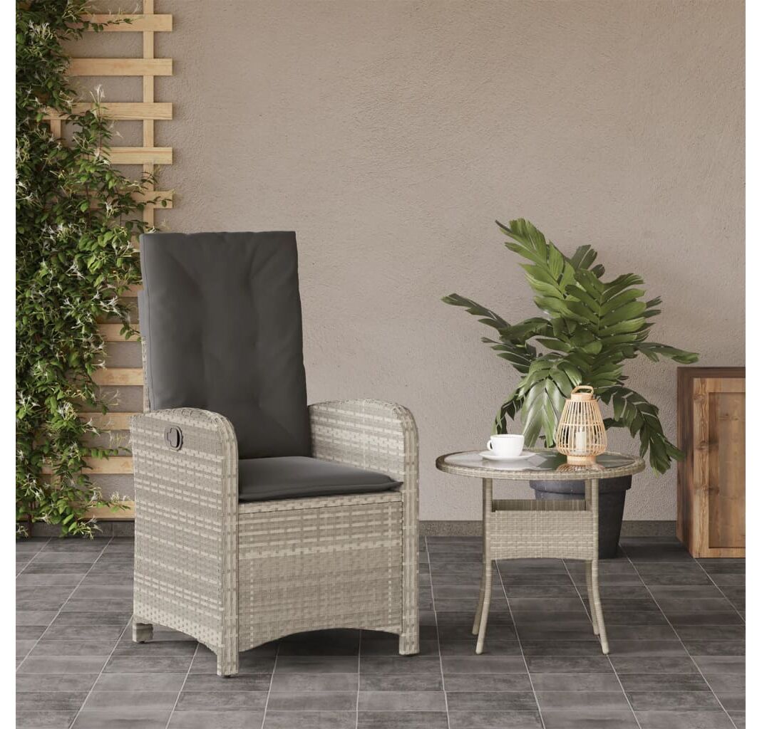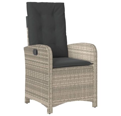 Scaun de grădină rabatabil cu perne, gri deschis, poliratan