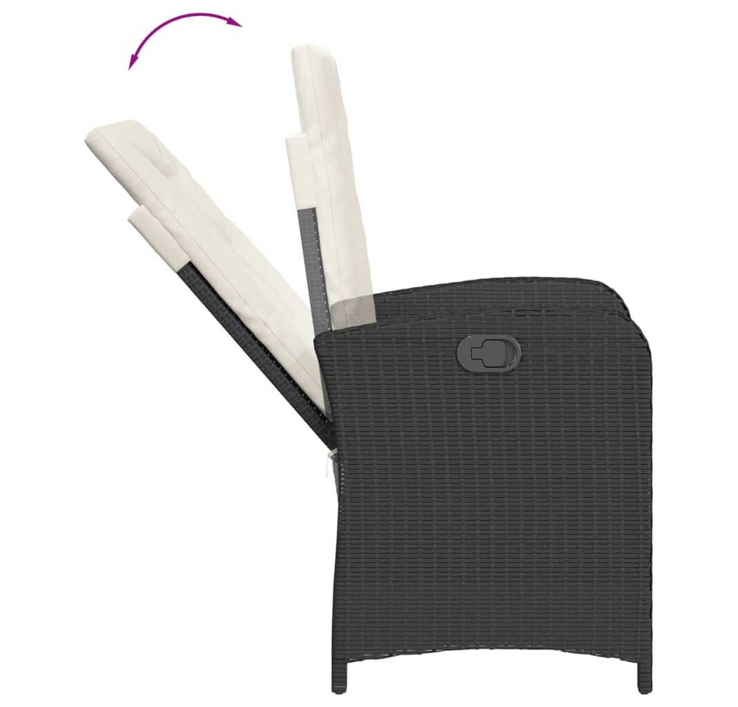- Spătar reglabil: Acest mobilier de grădină are un mâner pe partea dreaptă. Puteți regla spătarul în orice poziție trăgând de mâner. De asemenea, puteți readuce rapid spătarul în poziția inițială cu ajutorul mânerului.