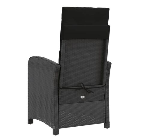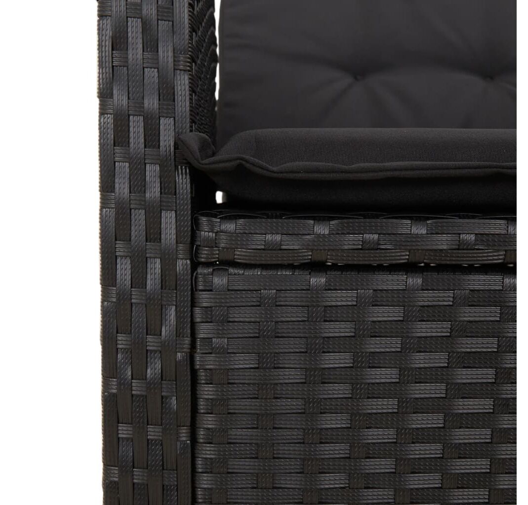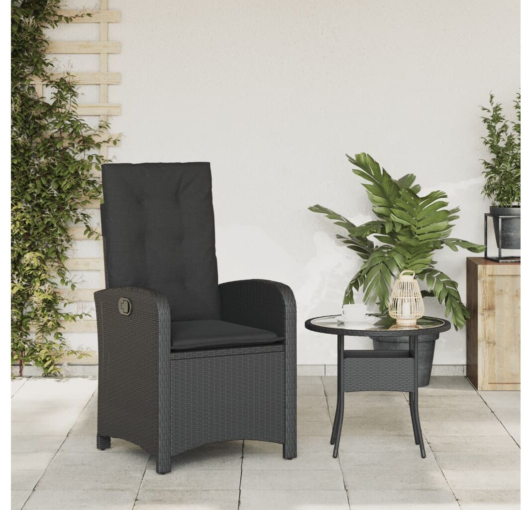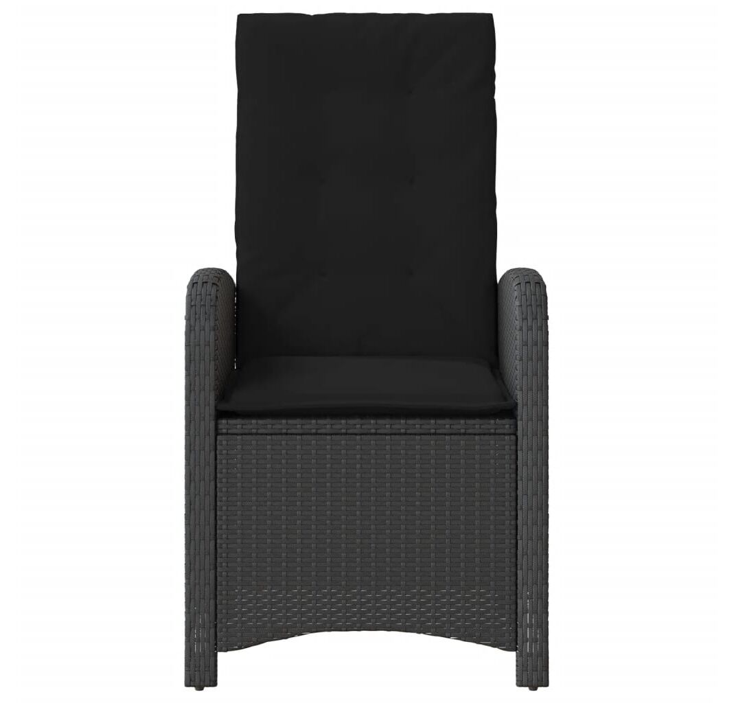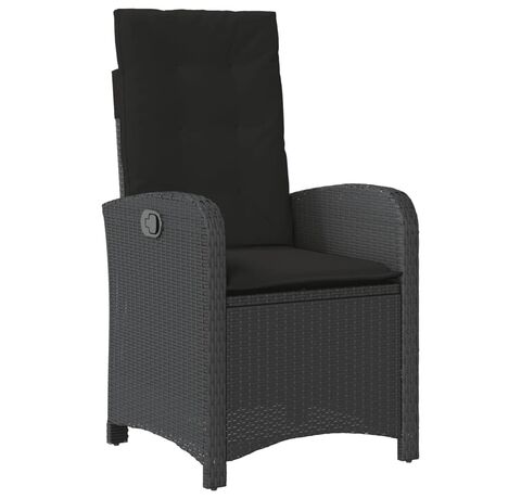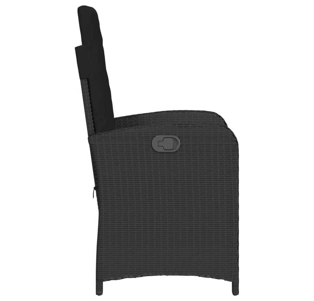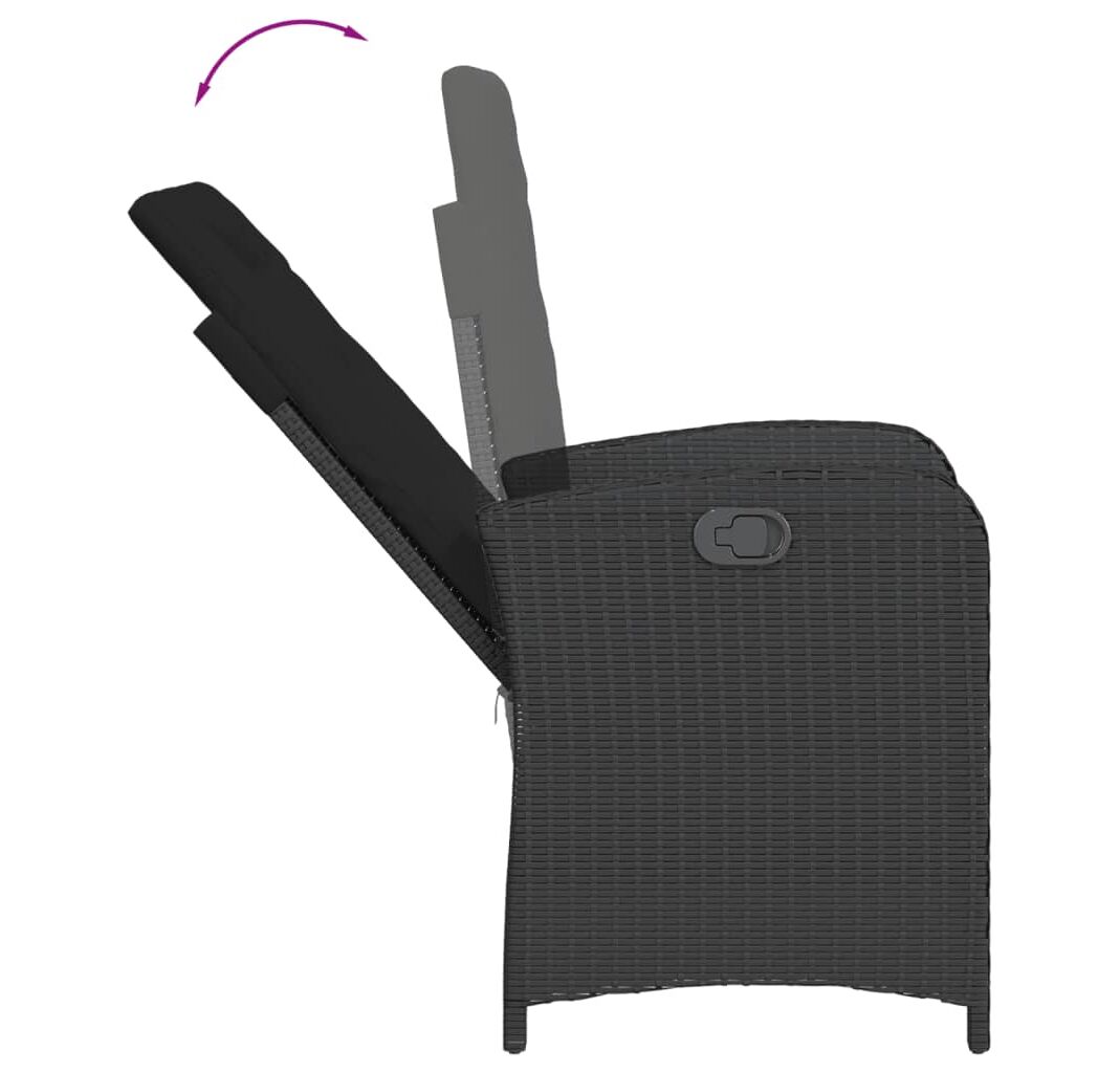 Scaun de grădină rabatabil cu perne, negru, poliratan