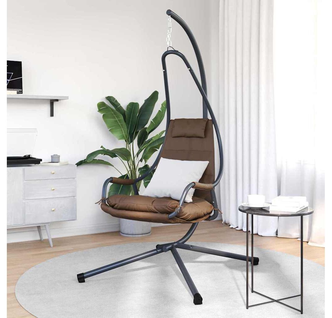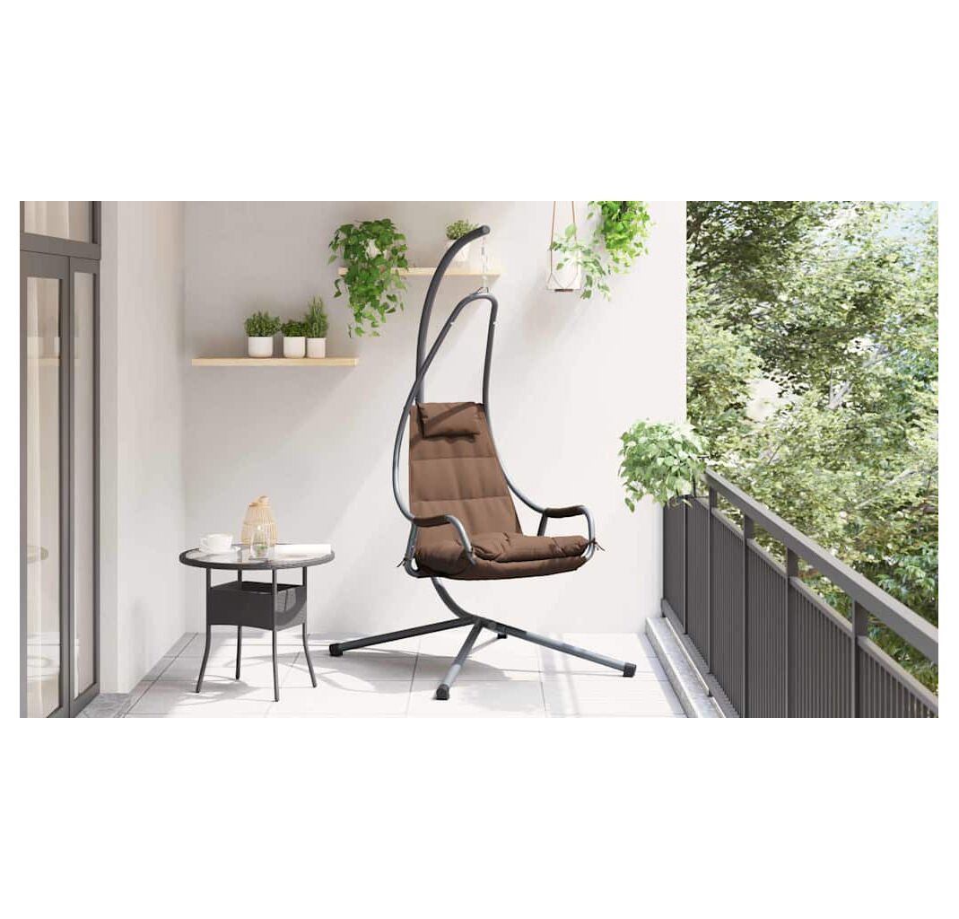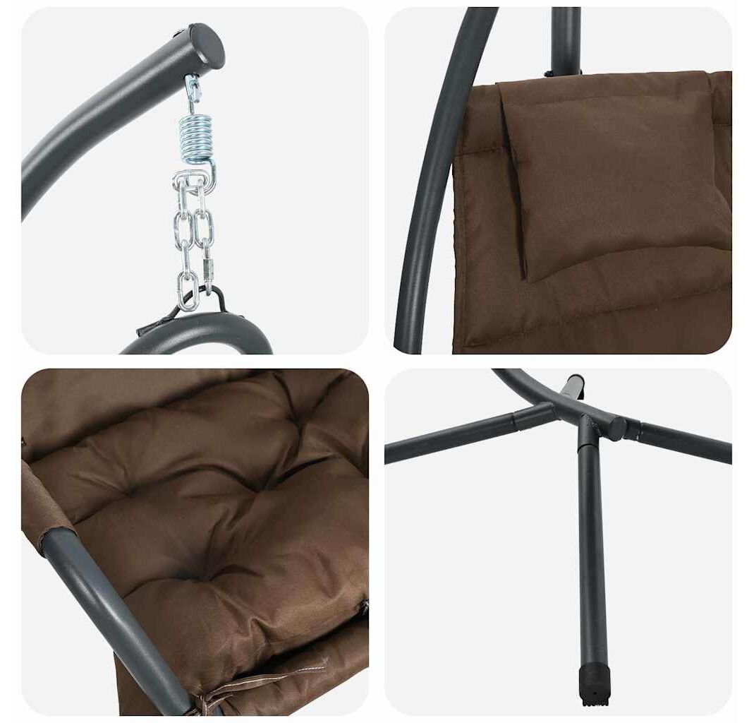 Acest scaun suspendat e făcut pentru confort și stil modern, perfect pentru relaxare pe balcon sau patio. Cadrul din oțel de culoare cafea, plus scaunul din poliester moale, creează o atmosferă primitoare, ideală pentru serile de vară sau după-amiezile plăcute.