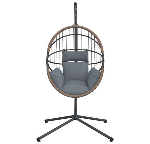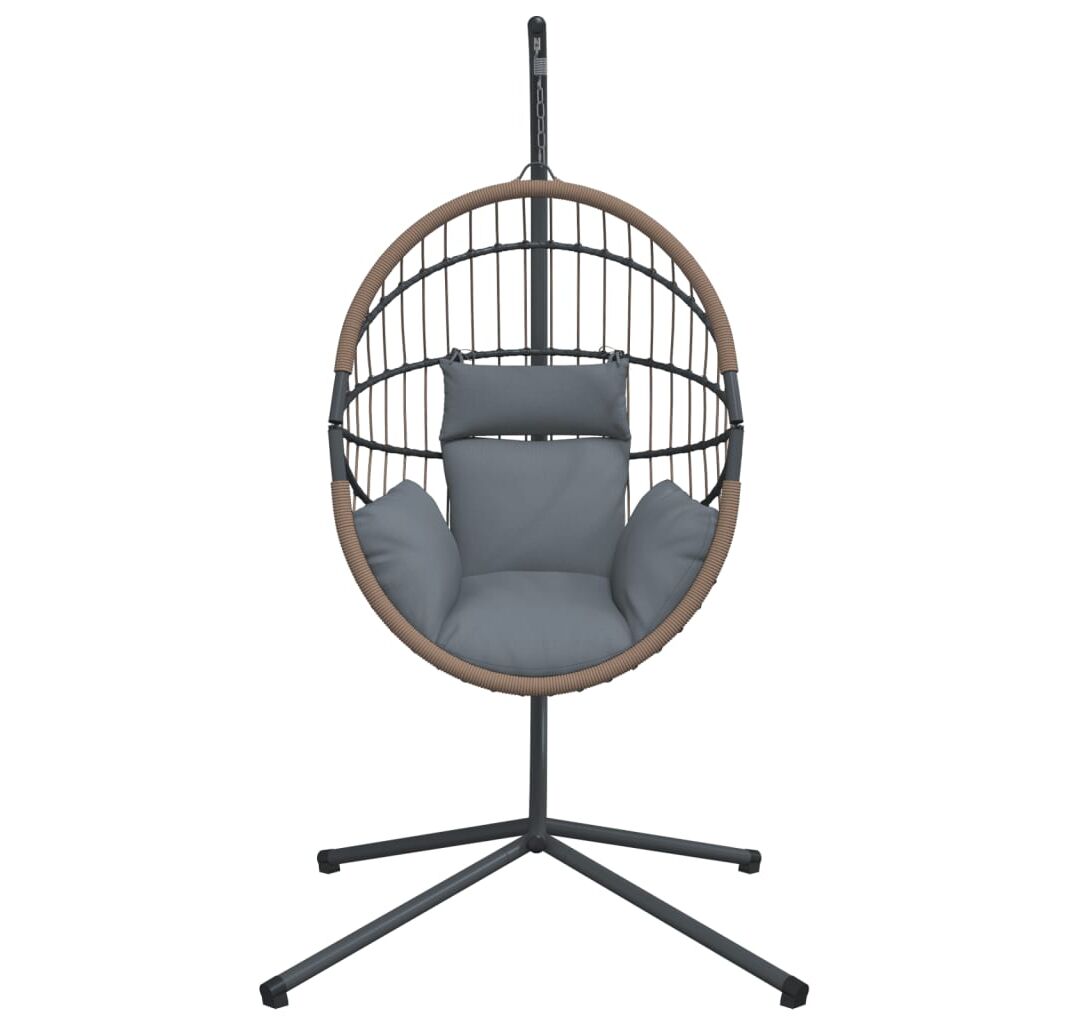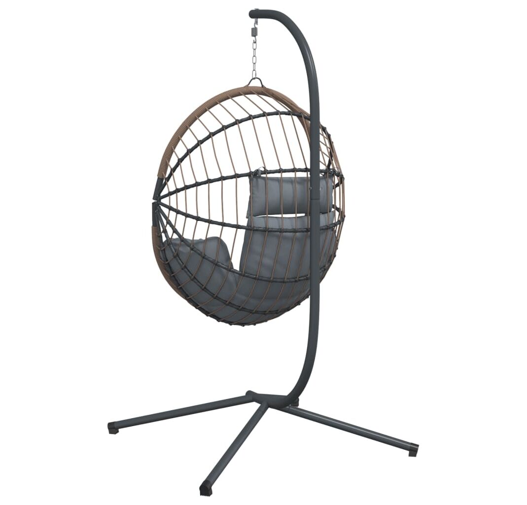 Scaun suspendat tip ou, cu suport, gri deschis, ratan și oțel