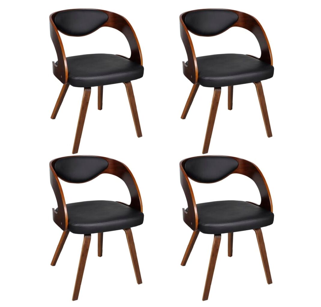 Scaune de bucătărie 4 buc., maro, lemn curbat & piele ecologică