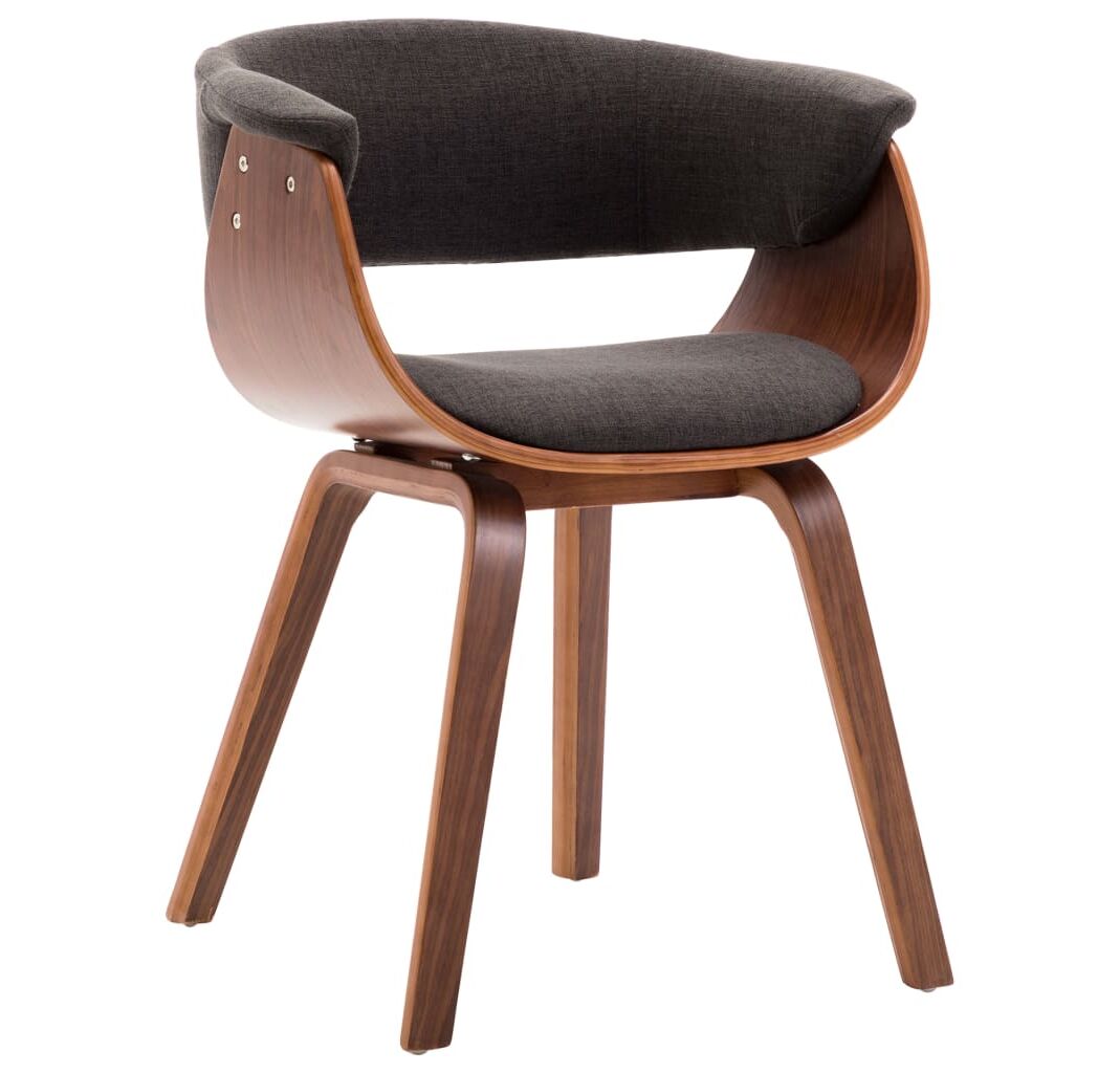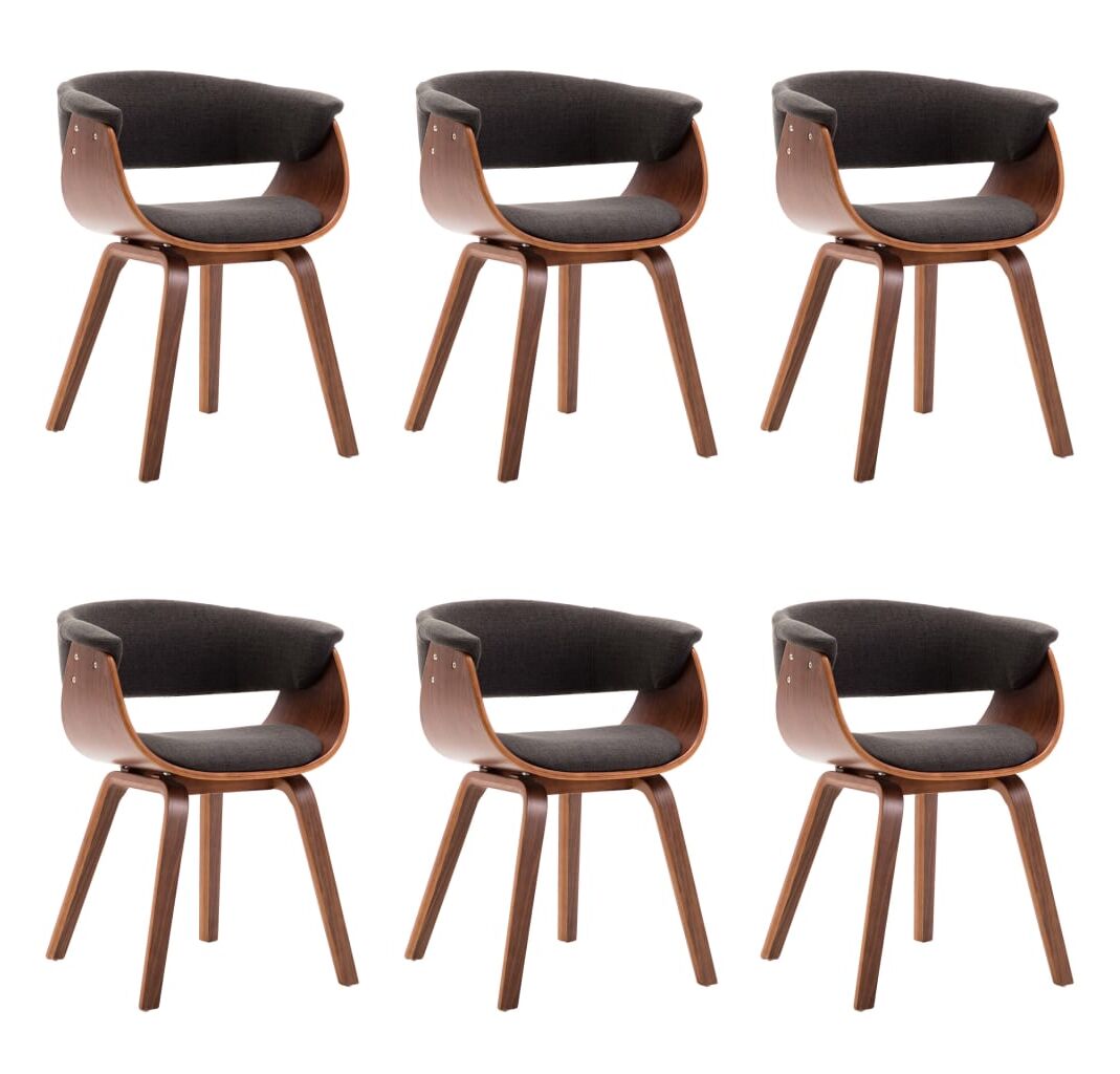 Scaune de bucătărie 6 buc, gri, lemn curbat și material textil