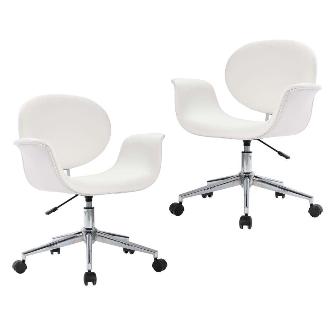 Scaune de bucătărie pivotante, 2 buc., alb, piele artificială