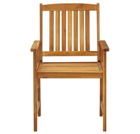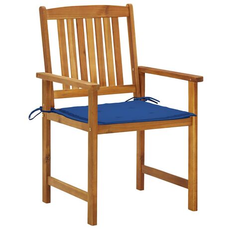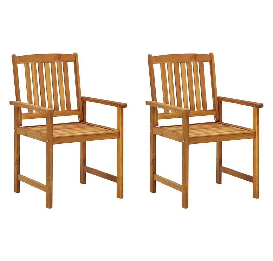 Aceste scaune de grădină sunt fabricate din lemn masiv de acacia, fiind robuste și stabile. Pernele adaugă un plus de confort. Fiecare pernă are două seturi de șnururi, pentru o fixare mai bună pe scaun.