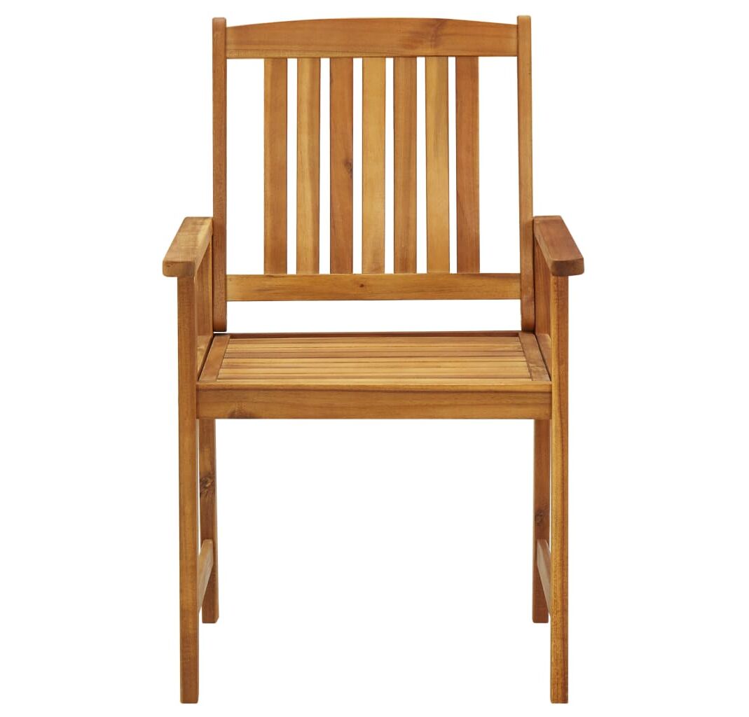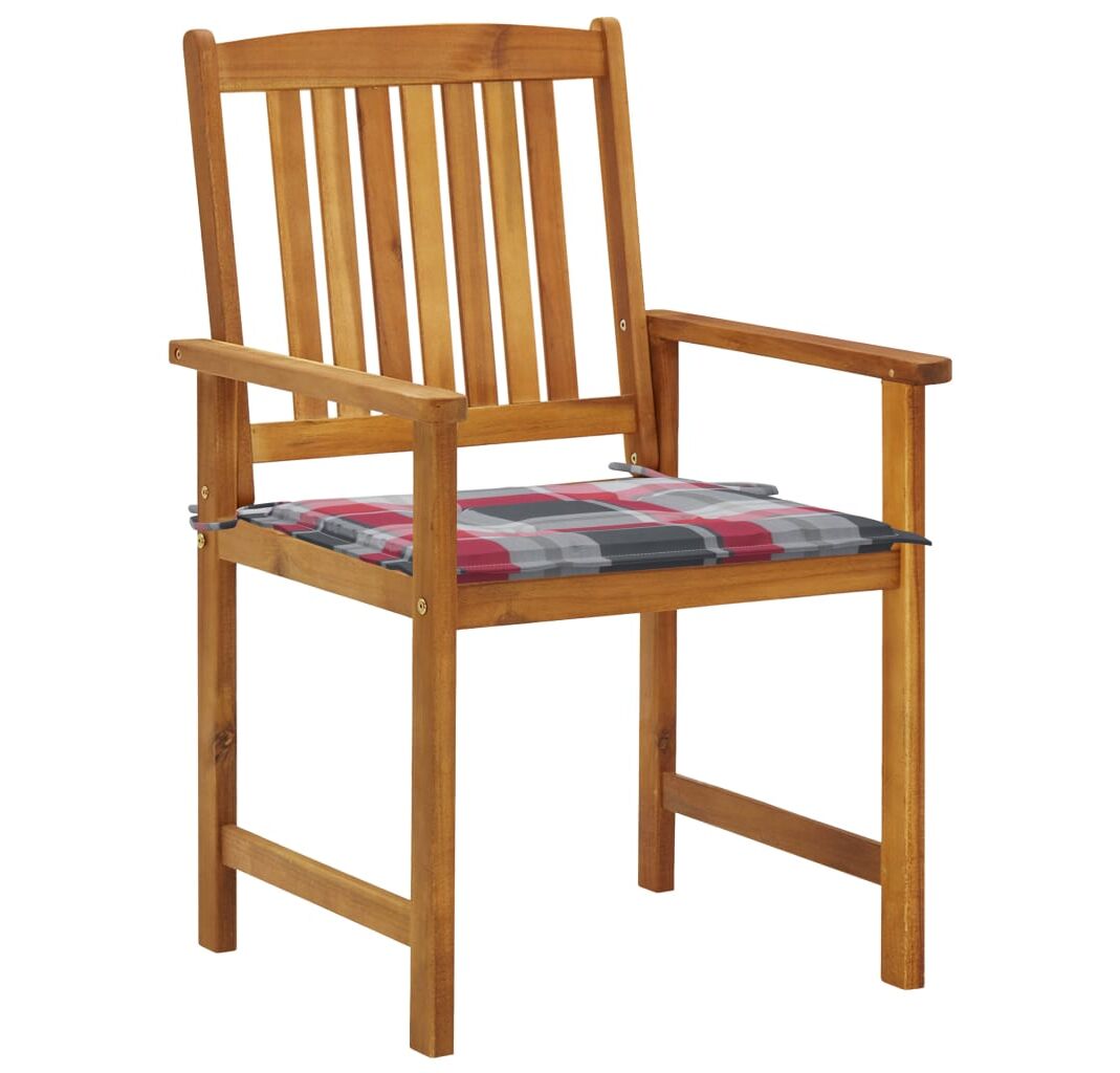 Aceste scaune de grădină sunt fabricate din lemn masiv de acacia, fiind robuste și stabile. Pernele adaugă un plus de confort. Fiecare pernă are două seturi de șnururi, pentru o fixare mai bună pe scaun.