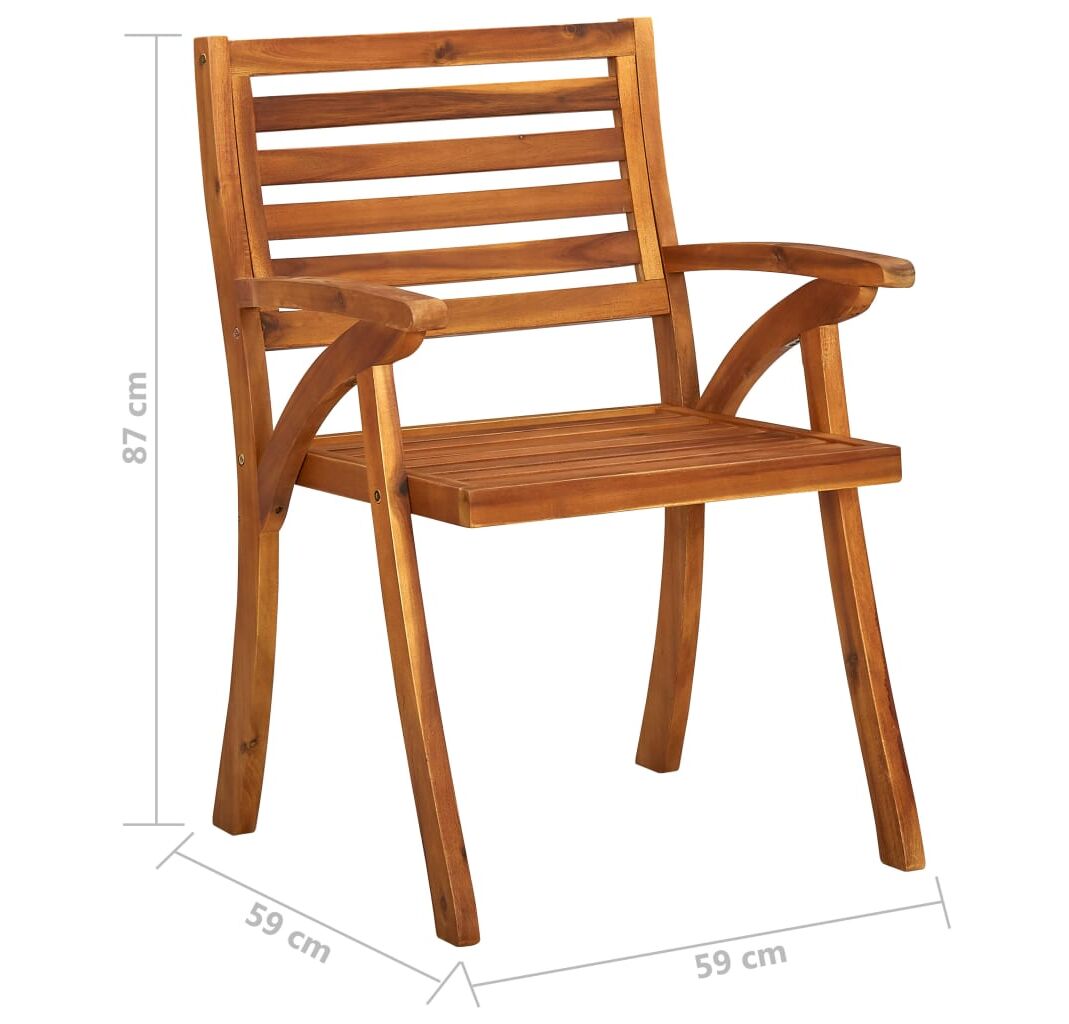 Luați loc pentru o cină minunată în aer liber sau pur și simplu relaxați-vă și bucurați-vă de vremea frumoasă, cu aceste scaune de masă din lemn masiv de acacia.