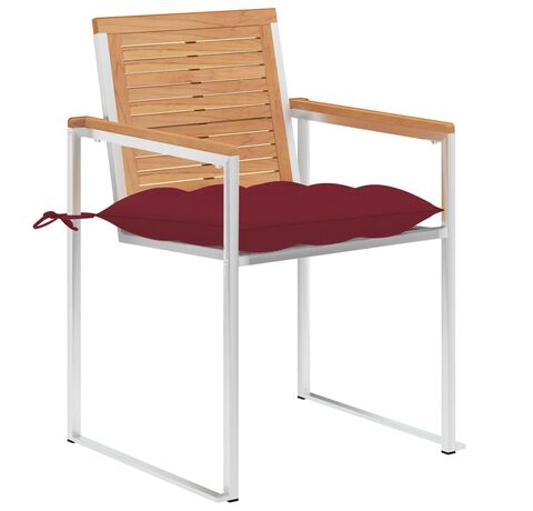 Construit din lemn de tec de esență tare, extrem de durabil, această piesă de mobilier din tec a fost tratată, uscată la cuptor și apoi șlefuită fin pentru a da un aspect foarte neted. Lemnul de tec este cunoscut pentru robustețea sa excepțională și rezistența la intemperii, făcându-l mult mai potrivit pentru mobilierul de grădină decât orice alt tip de lemn. Lemnul de tec este alegerea perfectă dacă doriți să achiziționați o piesă de mobilier de grădină de lungă durată. Cadrul din oțel inoxidabil de înaltă calitate le face, de asemenea, extrem de durabile, rezistente la rugină și robuste. Perna inclusă este mai mult decât un plus practic; are și o funcție decorativă. Așezați-vă pentru o cină în aer liber sau relaxați-vă și bucurați-vă de vreme cu acest set clasic de scaune de grădină.
