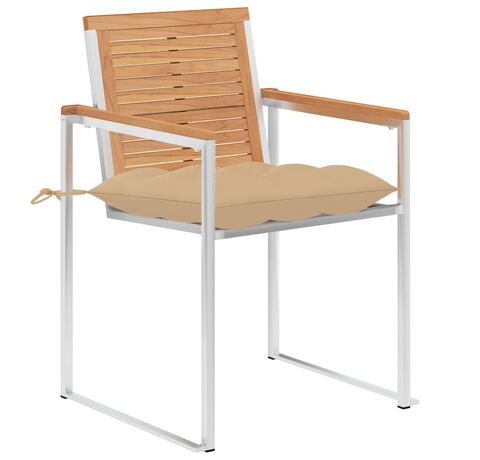 Construit din lemn de tec de esență tare, extrem de durabil, această piesă de mobilier din tec a fost tratată, uscată la cuptor și apoi șlefuită fin pentru a da un aspect foarte neted. Lemnul de tec este cunoscut pentru robustețea sa excepțională și rezistența la intemperii, făcându-l mult mai potrivit pentru mobilierul de grădină decât orice alt tip de lemn. Lemnul de tec este alegerea perfectă dacă doriți să achiziționați o piesă de mobilier de grădină de lungă durată. Cadrul din oțel inoxidabil de înaltă calitate le face, de asemenea, extrem de durabile, rezistente la rugină și robuste. Perna inclusă este mai mult decât un plus practic; are și o funcție decorativă. Așezați-vă pentru o cină în aer liber sau relaxați-vă și bucurați-vă de vreme cu acest set clasic de scaune de grădină.