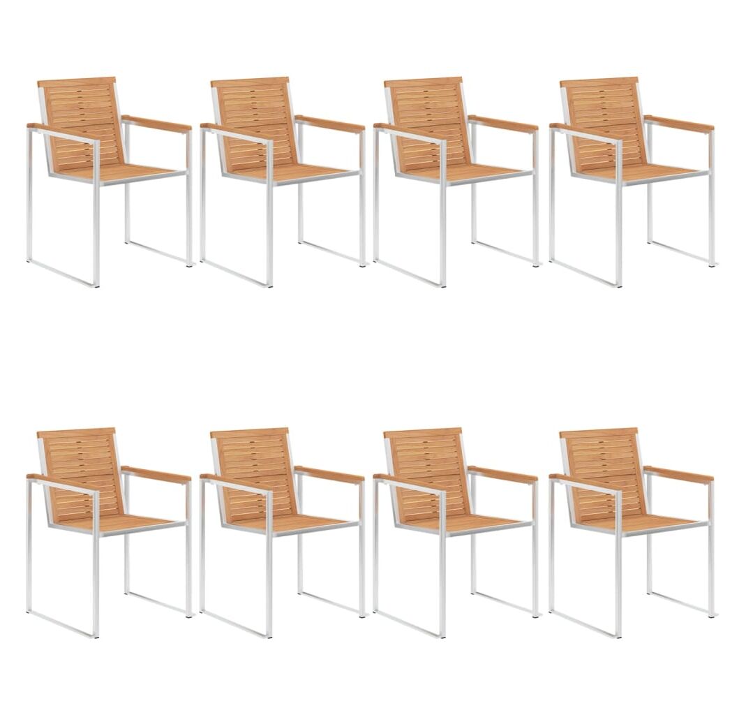 Construit din lemn de tec de esență tare, extrem de durabil, această piesă de mobilier din tec a fost tratată, uscată la cuptor și apoi șlefuită fin pentru a da un aspect foarte neted. Lemnul de tec este cunoscut pentru robustețea sa excepțională și rezistența la intemperii, făcându-l mult mai potrivit pentru mobilierul de grădină decât orice alt tip de lemn. Lemnul de tec este alegerea perfectă dacă doriți să achiziționați o piesă de mobilier de grădină de lungă durată. Cadrul din oțel inoxidabil de înaltă calitate le face, de asemenea, extrem de durabile, rezistente la rugină și robuste. Perna inclusă este mai mult decât un plus practic; are și o funcție decorativă. Așezați-vă pentru o cină în aer liber sau relaxați-vă și bucurați-vă de vreme cu acest set clasic de scaune de grădină.