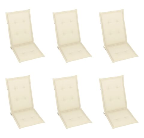 Cantitatea minima pentru "Scaune de grădină cu perne crem, 6 buc., lemn masiv de tec" este 1.