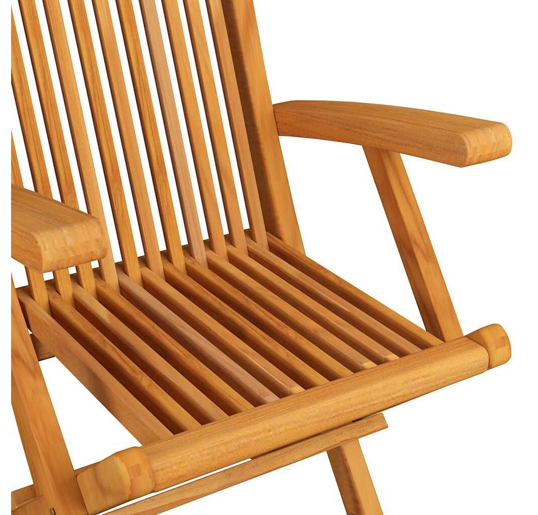 Suprafața șlefuită este ușor de curățat cu o cârpă umedă. Aceste scaune de exterior sunt, de asemenea, ușoare, ceea ce le face complet flexibile și ușor de deplasat. Scaunele din lemn pot fi pliate pentru a economisi spațiu atunci când nu sunt utilizate. În plus, pernele pentru șezut incluse oferă scaunelor un confort suplimentar.