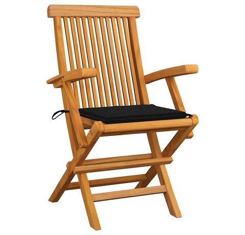 Cantitatea minima pentru "Scaune de grădină cu perne negre, 4 buc., lemn masiv de tec" este 1.