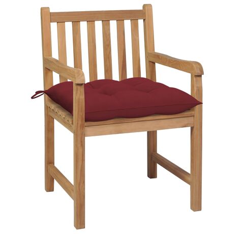 Scaune de grădină cu perne roșu vin, 2 buc., lemn masiv de tec